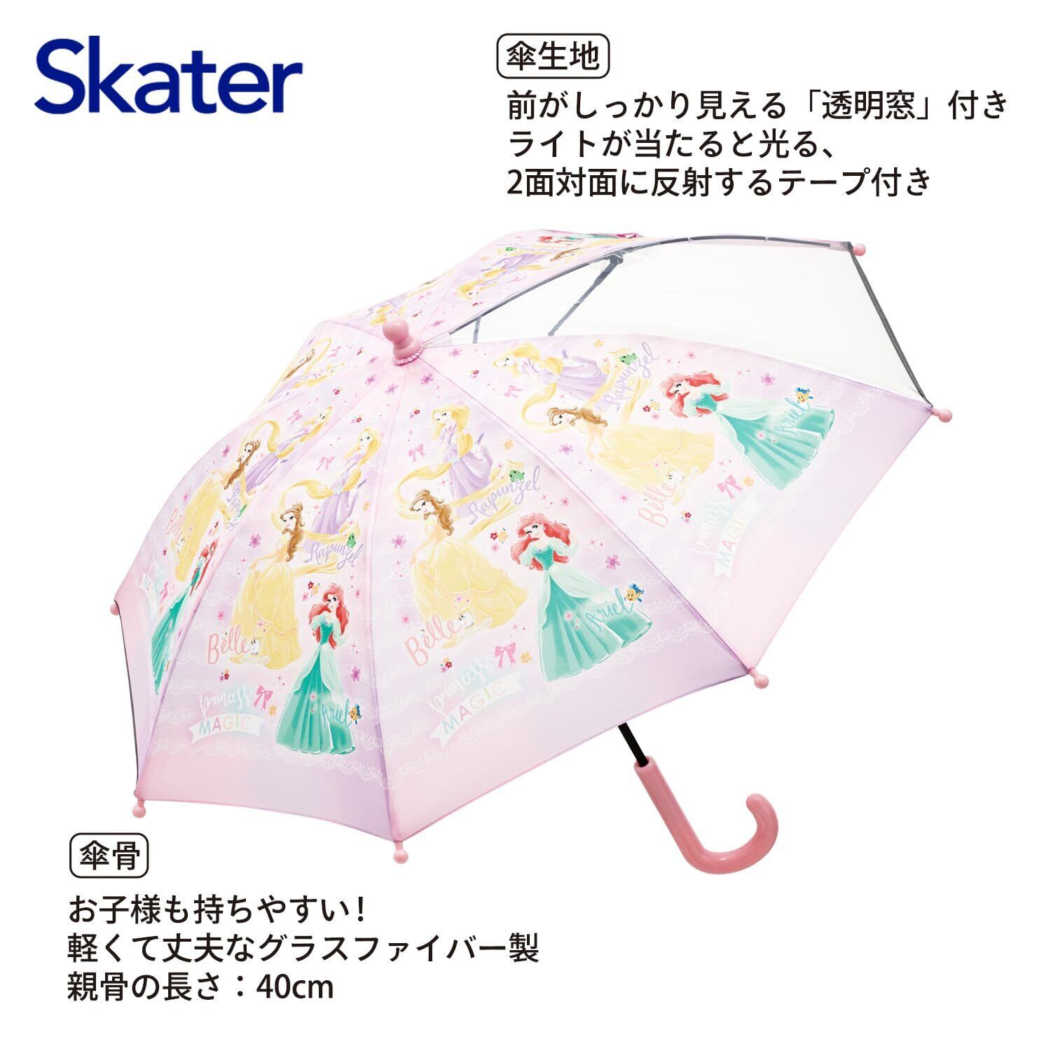 スケーター(Skater) 子供用 傘 40cm プリンセス 3~4才向け 約95~105cm 園児向け 視界が確保できる透明窓付き 指を挟みにくい手開き式 8本骨ス ディズニー 女の子 UB40-A