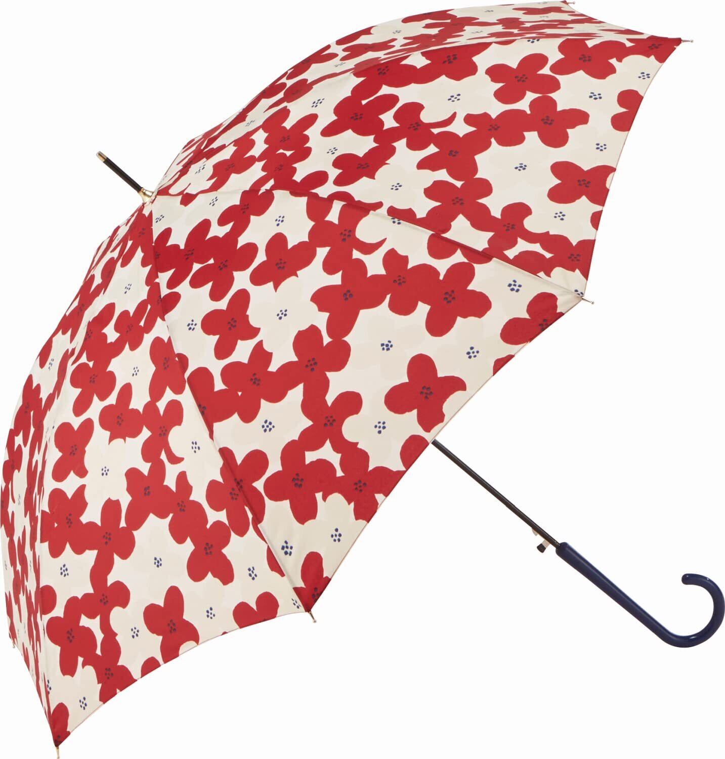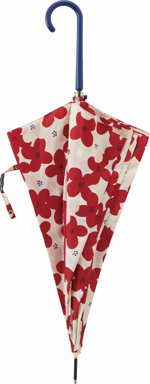 長傘 60cm ジャンプスリム 耐風骨 フラワープリント レッド 【17850】