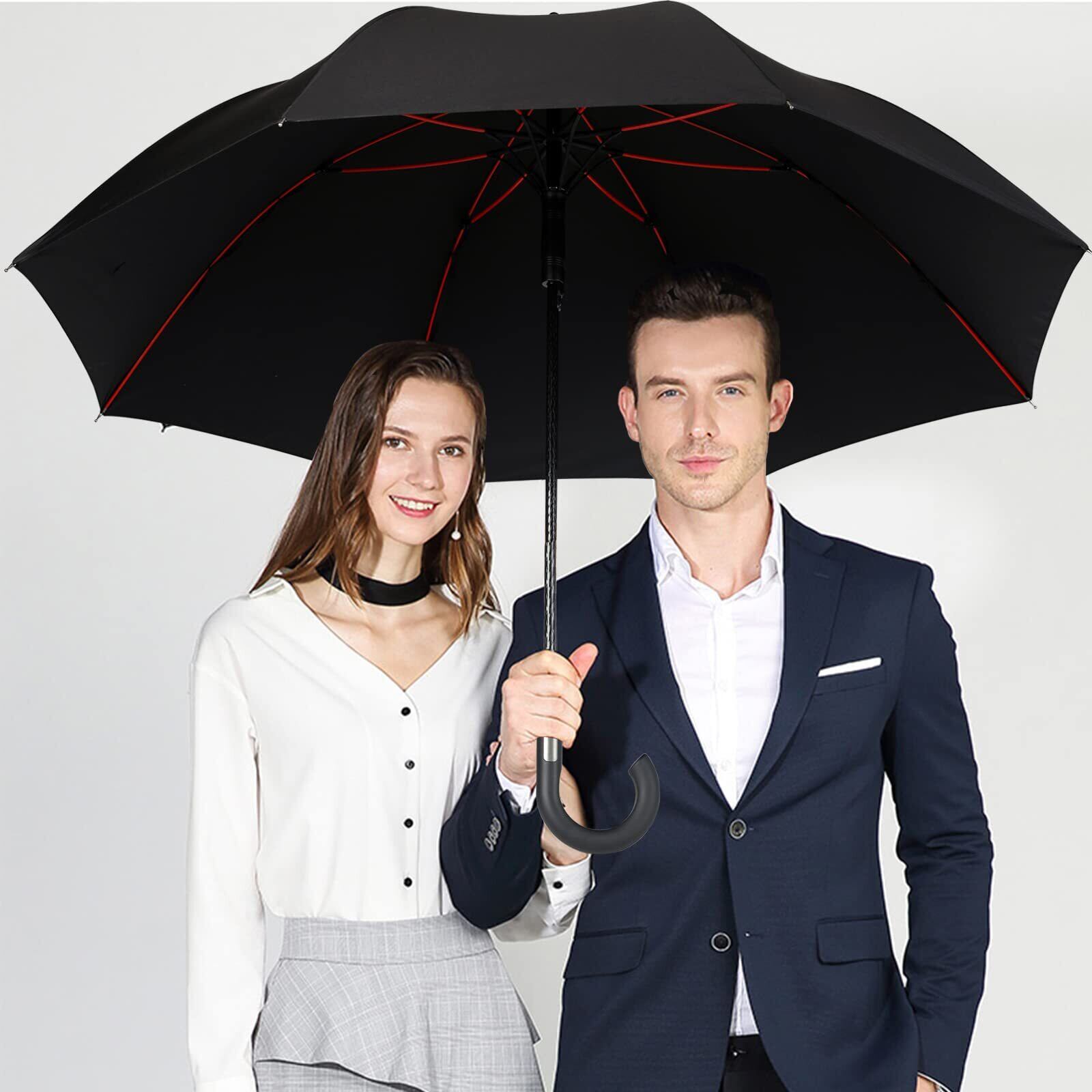 【二人も余裕の大きさ】開く直径は112cmで、傘の表面が130cmまで達し、メンズ向けに大型化した長傘です。2人で並んで差しても窮屈無く余裕のあるワイドサイズです!また斜め方向から打ち付ける雨にも濡れにくい仕様となります。