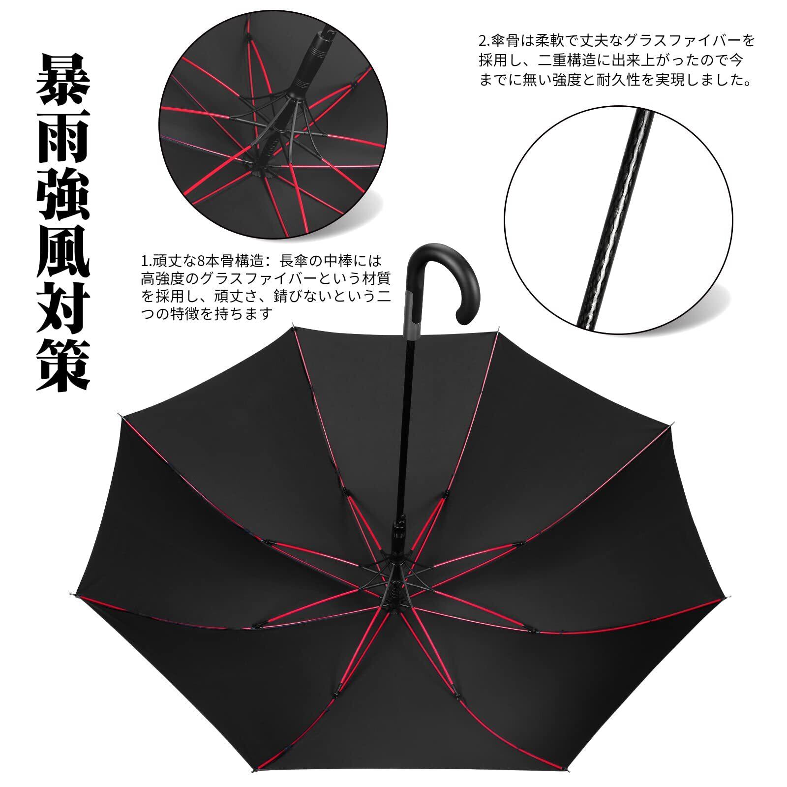 【高強度の8本骨の耐久性】:わざわざ台風、暴風雨の天気の為に工夫を凝らして設計した耐強風の傘骨となります。暴風に応対性が強くなるため、骨組みに工夫を凝って頑丈な製の八本の傘骨を採用しているのおかげで、アルミニウム合金製の傘より優れた耐風性を持っています。強い風でひっくり返っても、開閉スイッチを押したら、骨が曲がることなく、すぐ元通りになります。