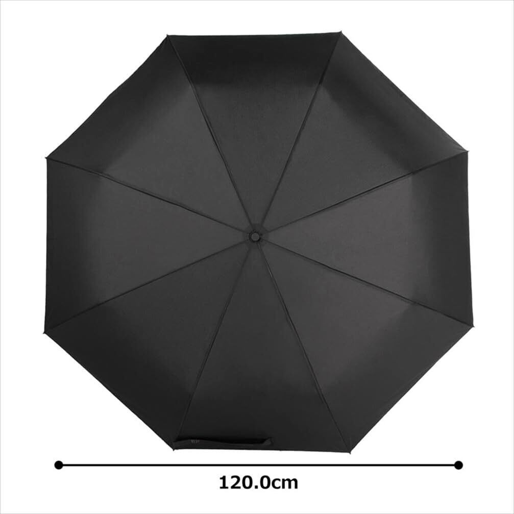 【濡れにくい大判サイズの122cm】折りたたみ傘ですが、開いた時のサイズが約122cmと非常に大きくなっています。サイズ感としては通常の大判紳士傘と比較しても遜色ない仕様なので、荷物を持ってさしていてもほとんど濡れません。また、折りたたむと30cmほどのサイズなので、カバンなどに入れて持ち運びしやすくなっています。また、太めのバンドになっているので、傘は大きいですが、留めやすくなっています。