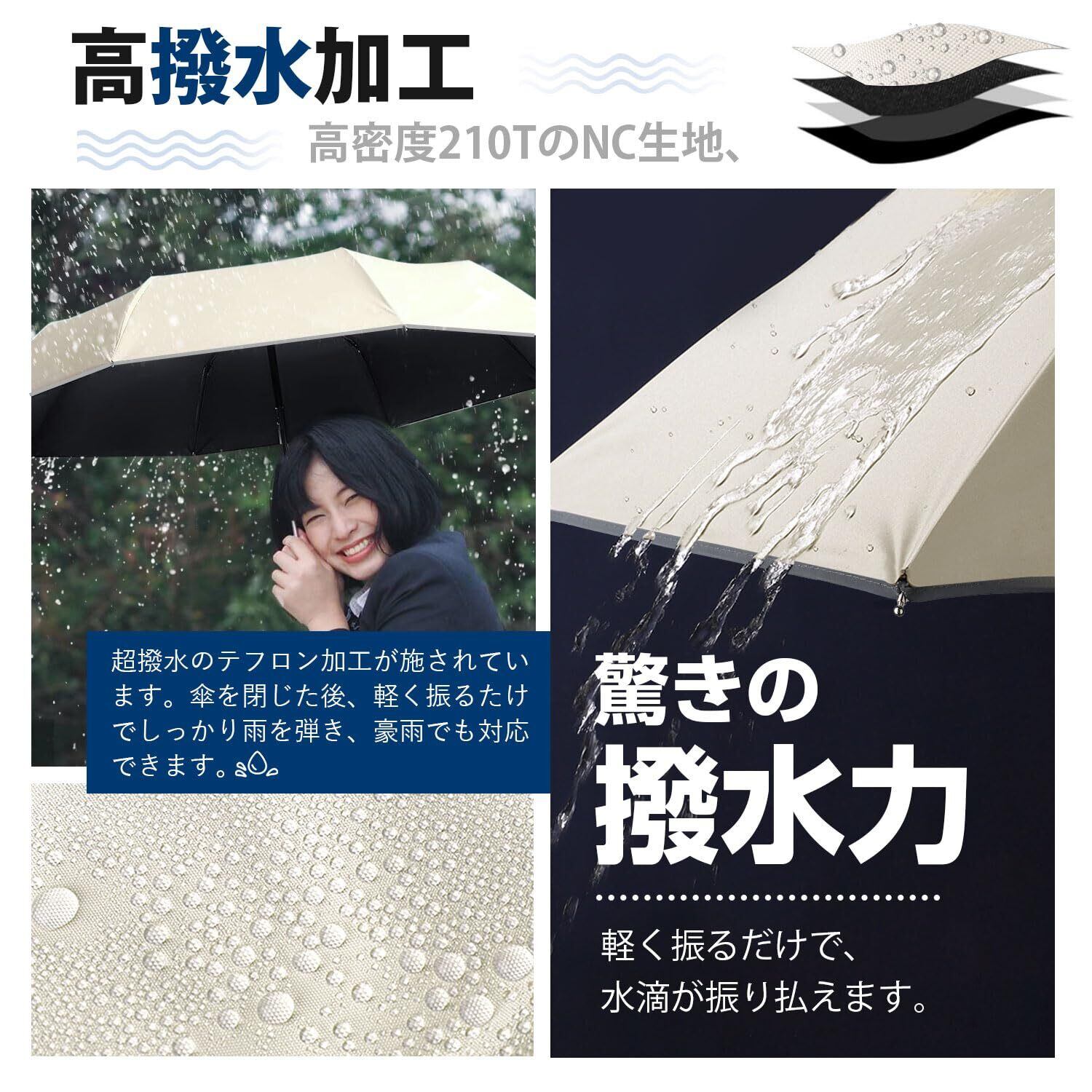 【超撥水210T生地テフロン加工、晴雨兼用】高密度の210T生地は雨が染み込みにくいし、表面テフロン(Teflon)撥水コーティング施され、軽く振るだけで水滴を落とし、さっと雨粒を拭き取ると早く乾燥させることができる折り畳み傘です。この折り畳み傘はデュアルコーティング加工を施し、UVカット率99%のある表生地により紫外線を遮断し、黒い裏生地は眩しさを軽減し、地面から太陽熱の暑さを防ぎ、撥水性・遮光性とも優れた晴雨兼用傘です。ますます暑くなる夏日に、男性が日傘として使っても違和感がなく、熱中症予防にも役立ち、日傘に抵抗がある方でも雨傘と同じ感覚でお使いいただけます。 雨の日も晴れの日もこの1本で済みます。