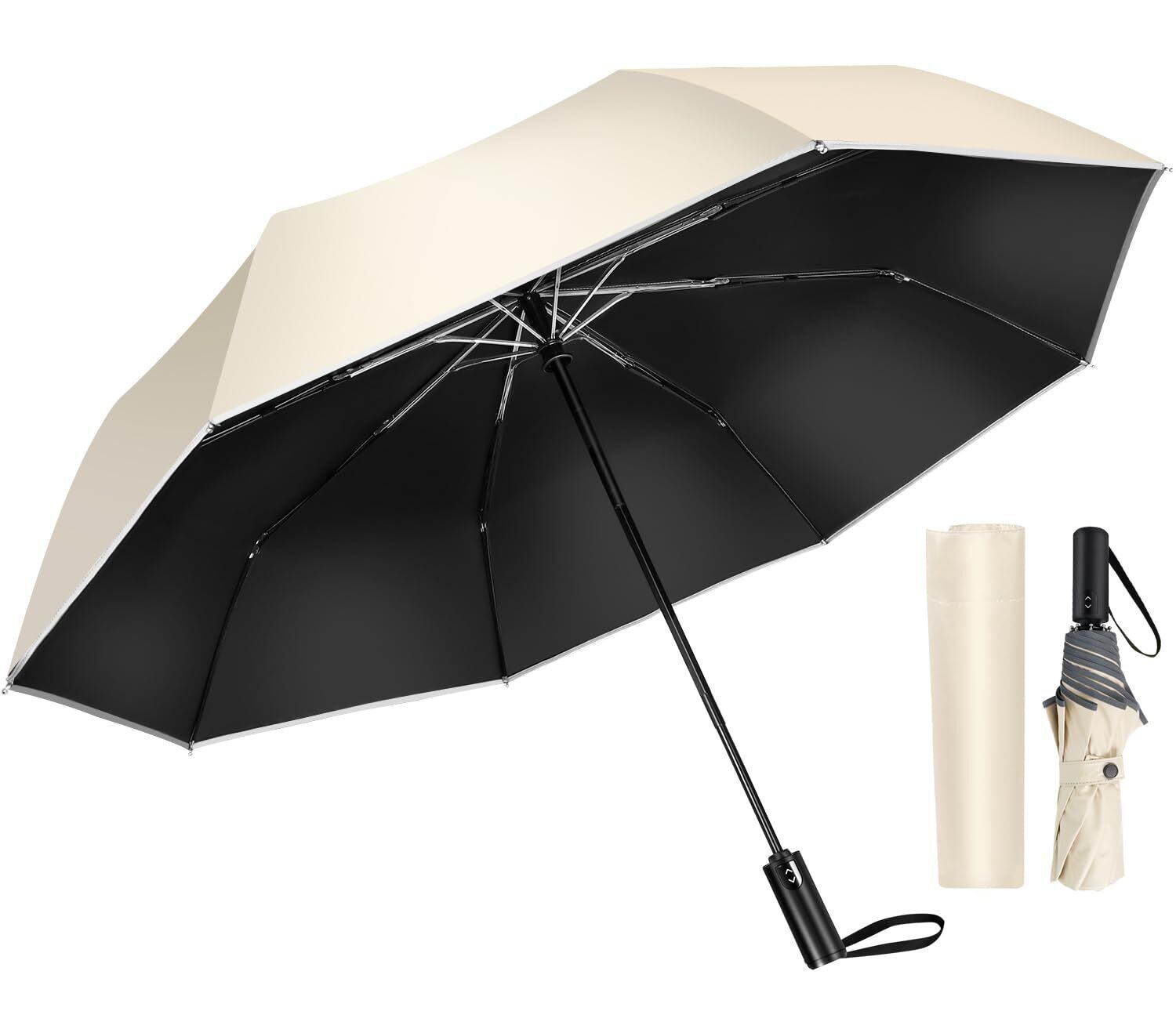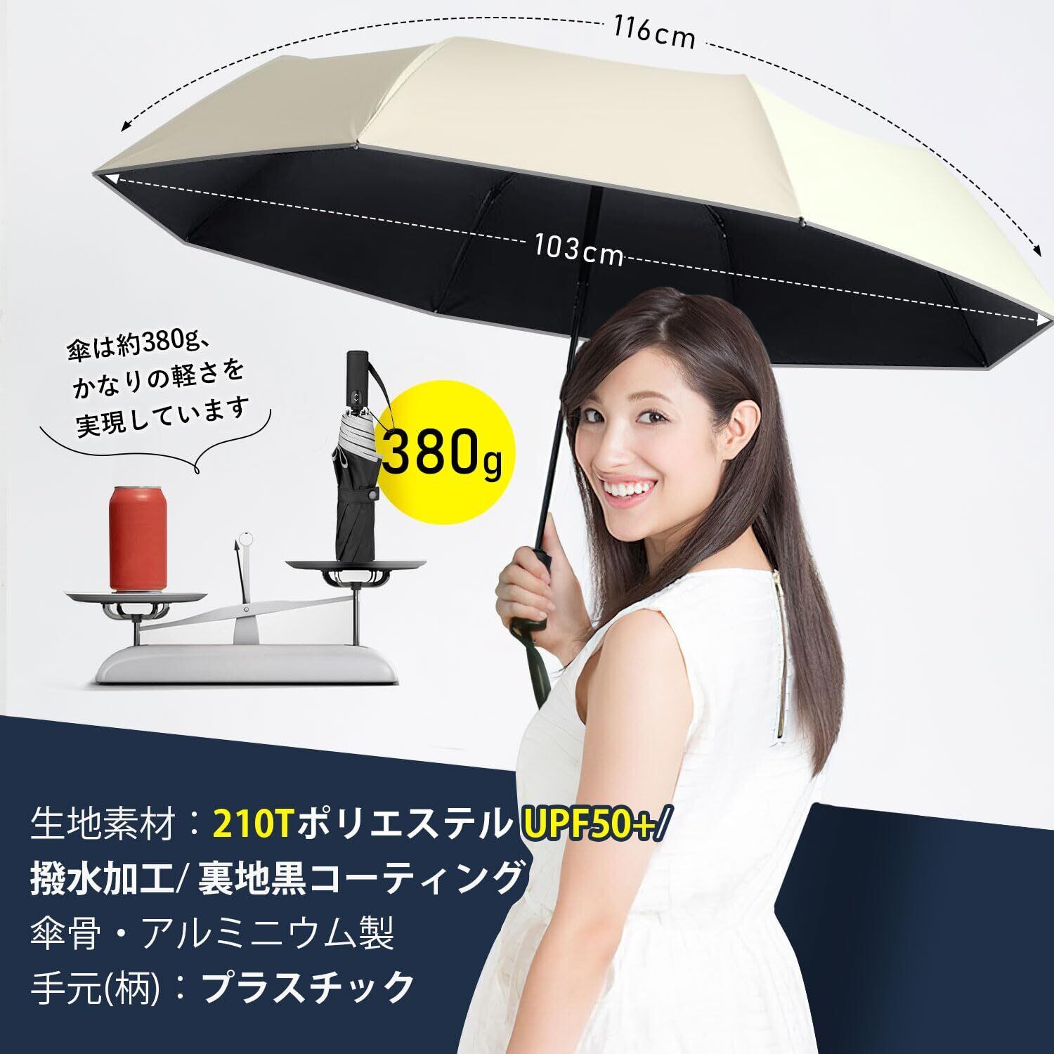 【自動開閉、耐風傘骨】素材:アルミ・210Tポリエステル 重量:約380g 親骨61cm 開く直径は103cmで、弧長116cmまで達し、折りたたむ時の長さは31.8cmです。頑丈で耐久性のあるアルミニウム製の傘骨を8本採用することで高強度を実現、一般的な折りたたみ傘よりも耐風性に優れています。鉄骨傘よりも非常に軽量です。強風下においても、風による傘の「ひっくり返す」が軽減され、骨が折れてしまう事故を抑止します。持ち手は高品質なABS樹脂で作られており、手触りが良く、8cm持ち手フィット感抜群。長時間使用しても手首が疲れにくいです。