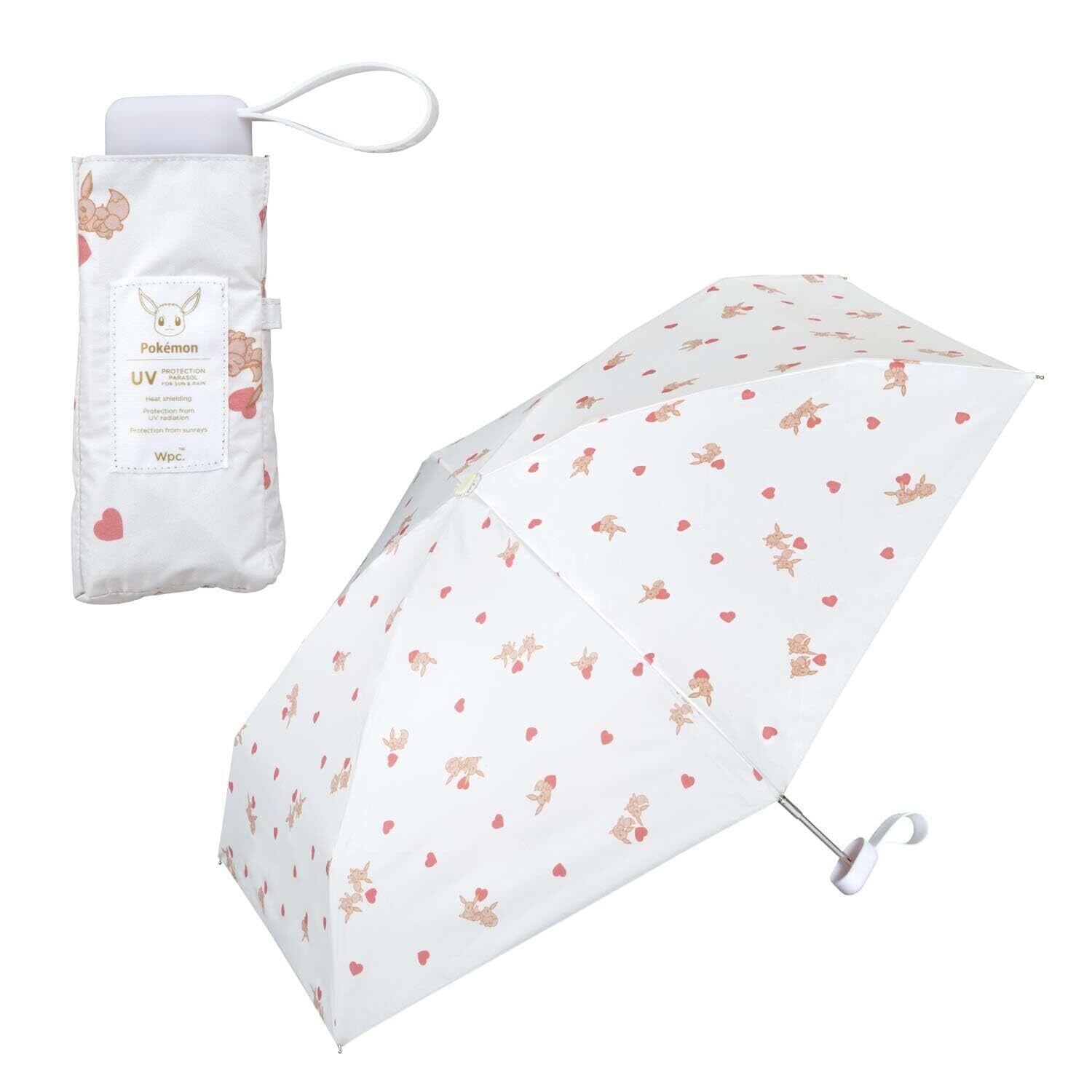 Enjoy adveture with Pokémon雨の日も晴れの日も お気に入りのパートナーと楽しく 冒険へでかけよう! Wpc.の人気コンパクト日傘がピカチュウ・イーブイのデザインとして登場!ポケモンとハートが散りばめられた可愛らしいデザインです。