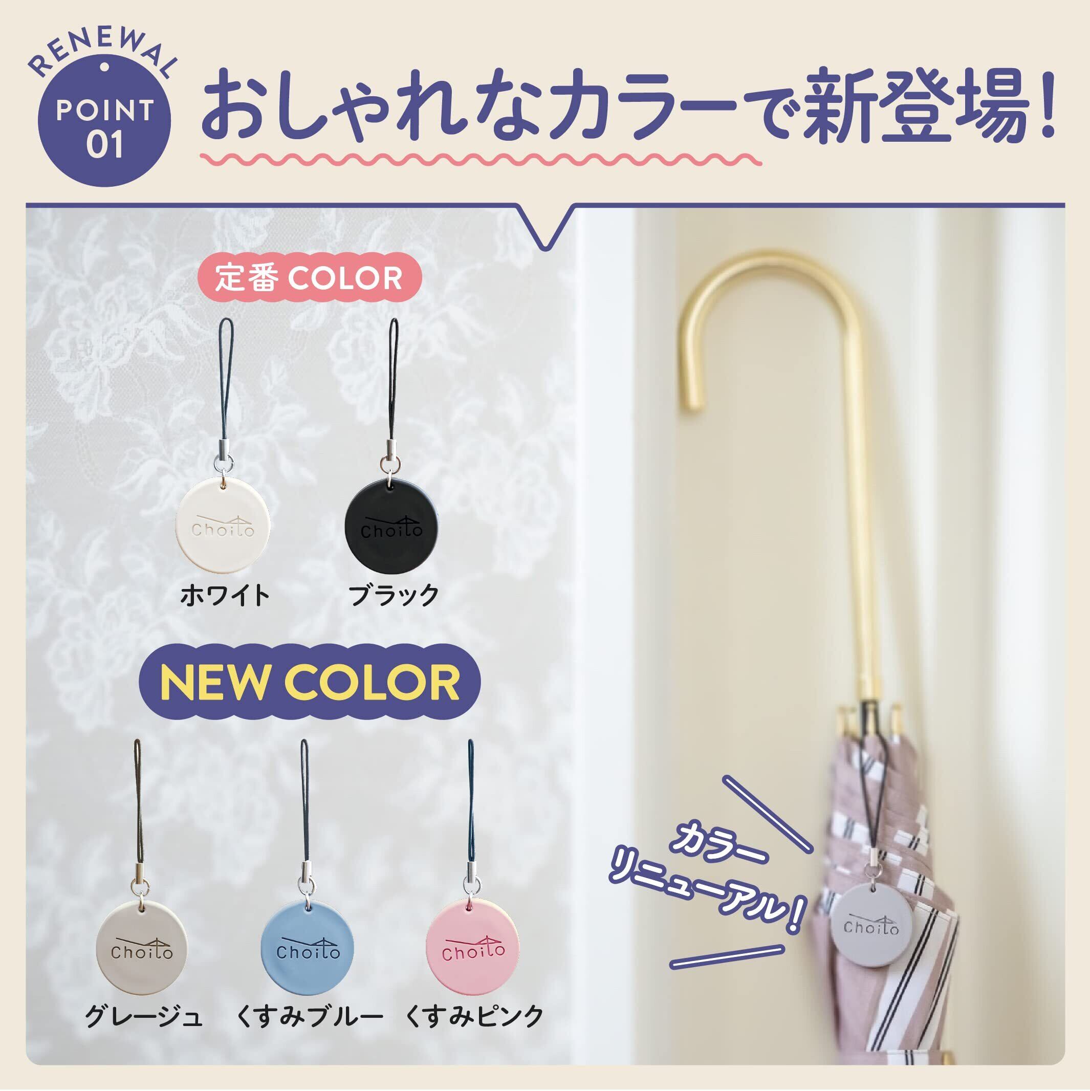 つけっぱなしでOK!かわいいデザインでアンブレラマーカーとしても使えます!カラーも全5色。いつもの傘のワンポイントに。