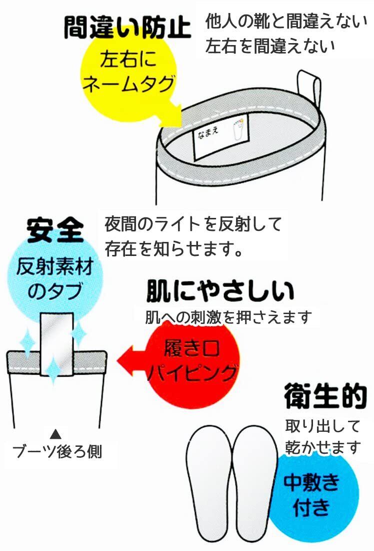 ブーツの後ろ側に雨の日に安心な反射テープ付き