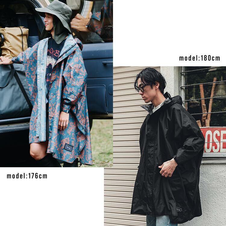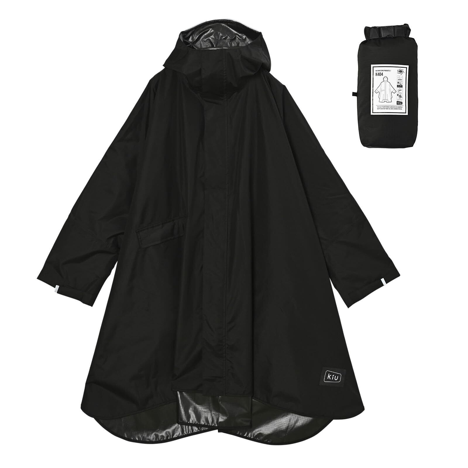 KiU キウ スタンダードレインポンチョ 2ND STANDARD RAIN PONCHO - 2ND 防水 撥水 はっ水 耐水 豪雨対応 雨対策 大雨 台風 梅雨 レインコート スリーブポンチョ 雨具 雨ガッパ 雨合羽 袖付き 収納袋 ポケット おしゃれ かわいい 通勤 通学 自転車 アウトドア フェス ユニセックス メンズ レディース 男女兼用 日本発ブランド ブラック K404-900