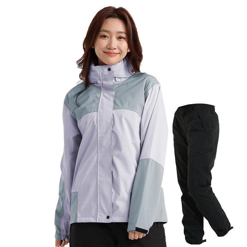 【軽量・運動性】採用したストレッチ素材は従来のレインウェアになかったフィット性で、軽くて、従来のレインウェア特有の作業着感が無く、あり得なかったアウトドア気分を実現、ゴルフレインウェア、トレッキングウェア、ウィンドブレーカーとしても使用できます!多機能で実用性高い春秋冬用レディース レインスーツ 上下セットです。