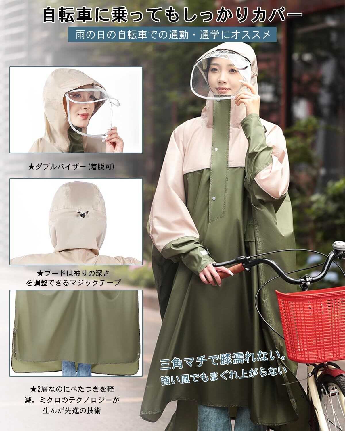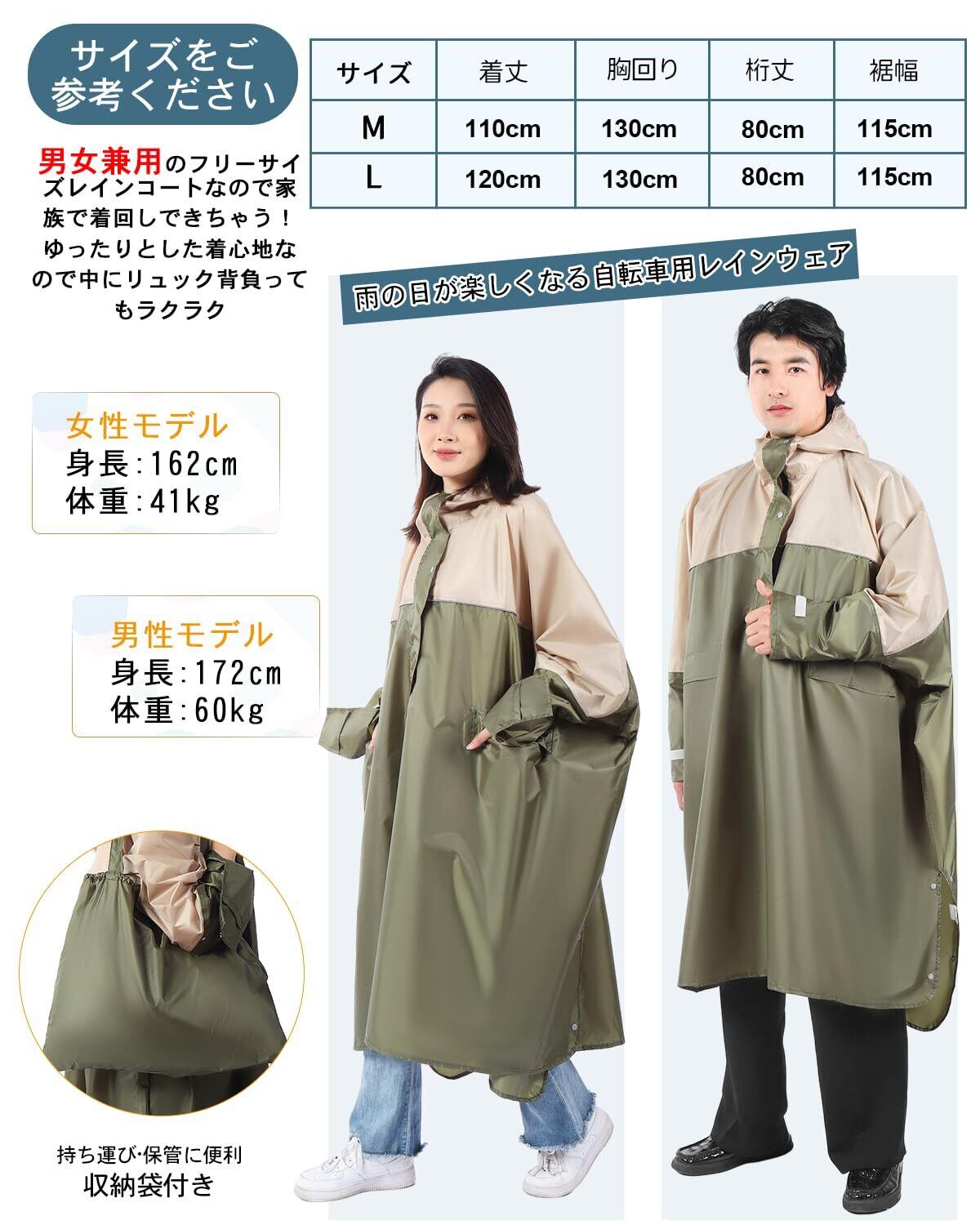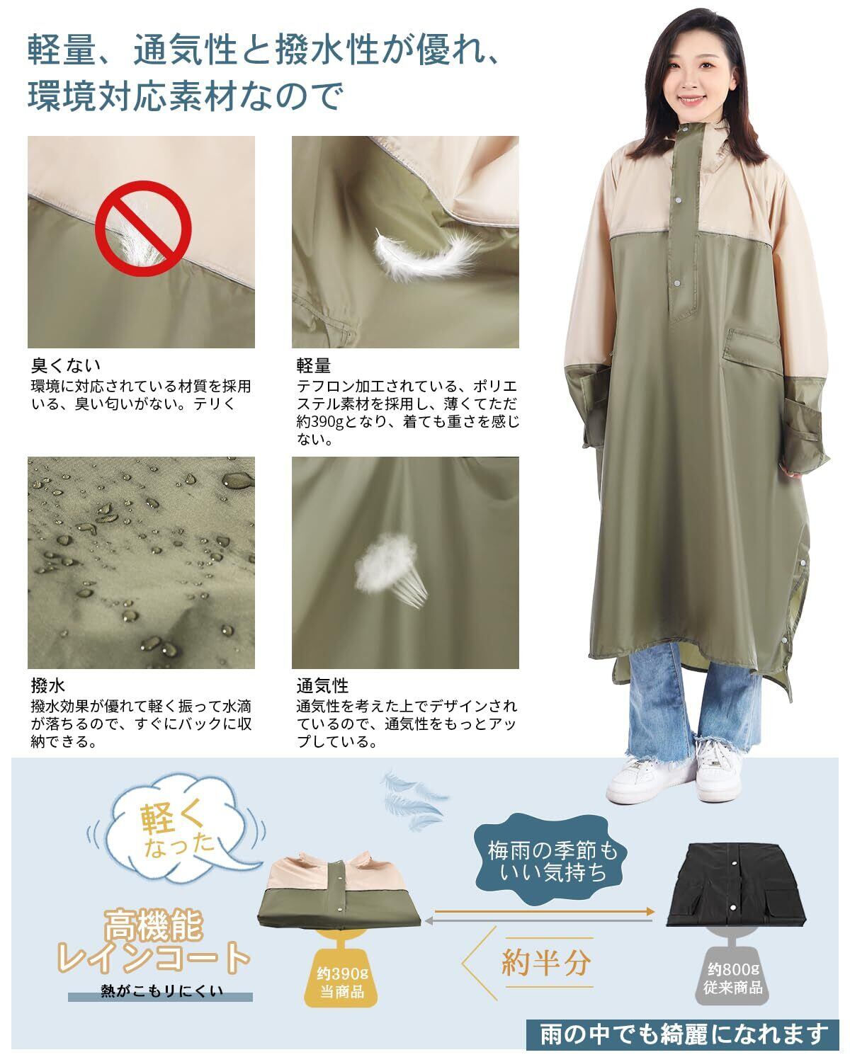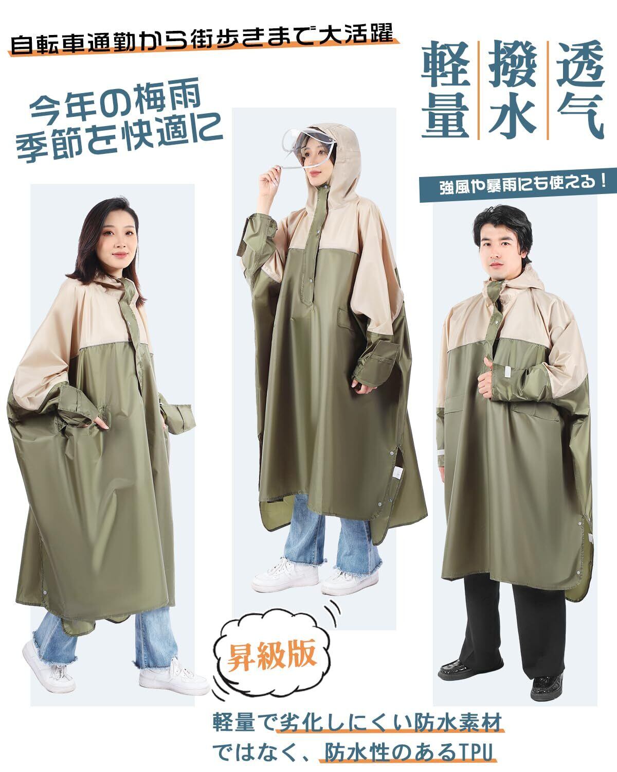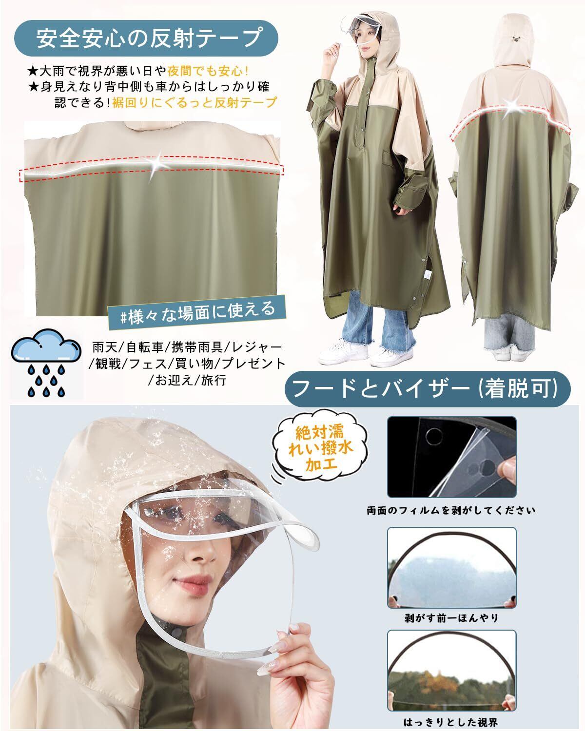 【2025新型・おしゃれ構造軽量で蒸れないレインコート】日常での使いやすさを重視し、街歩きや自転車運転で便利な機能が満載の快適・スタイリッシュなレインコートです。市場のレインコートと違って、弊店のレインコートは高品質のポリエステル素材を使用し、長年ご利用いただけます。自転車 原付におすすめ!リュックを背負ったまま着れる!雨の日でも安心安全な機能がもりたくさん:①16cm硬い二重つば:ツバは硬い素材で加工され、顔を覆ってなくて視界が良好です!②超軽量素材,収納袋付き、持ち運びに便利!③フードにはサイズを調節可能なドローコード仕様:頭のサイズに合わせて調整可能。また雨水の侵入も防止します。④前身頃に大きめなポケツトを2個デザインで、ちょっとした小物や折りたたみ傘の収納にも便利。⑤横身には切り上げデザインを使用し、リュックを背負ったままでも自転車をこいいただけます。そして夜間外出にも安全な反射ラインがついております。