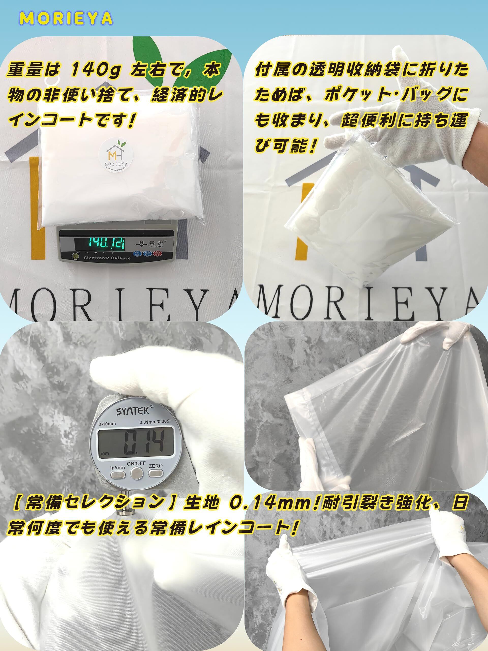 [MORIEYA] レインコート EVA 素材 140g 携帯便利 収納袋付き 使い捨てではない 男女兼用 レインウェア 半透明 リュック対応 ひも付きフード ゴム袖口 自転車 通勤 通学 アウトドア 水上項目 スポッツ観戦 登山、釣りをする フリーサイズ 梅雨対策 防災グッズ