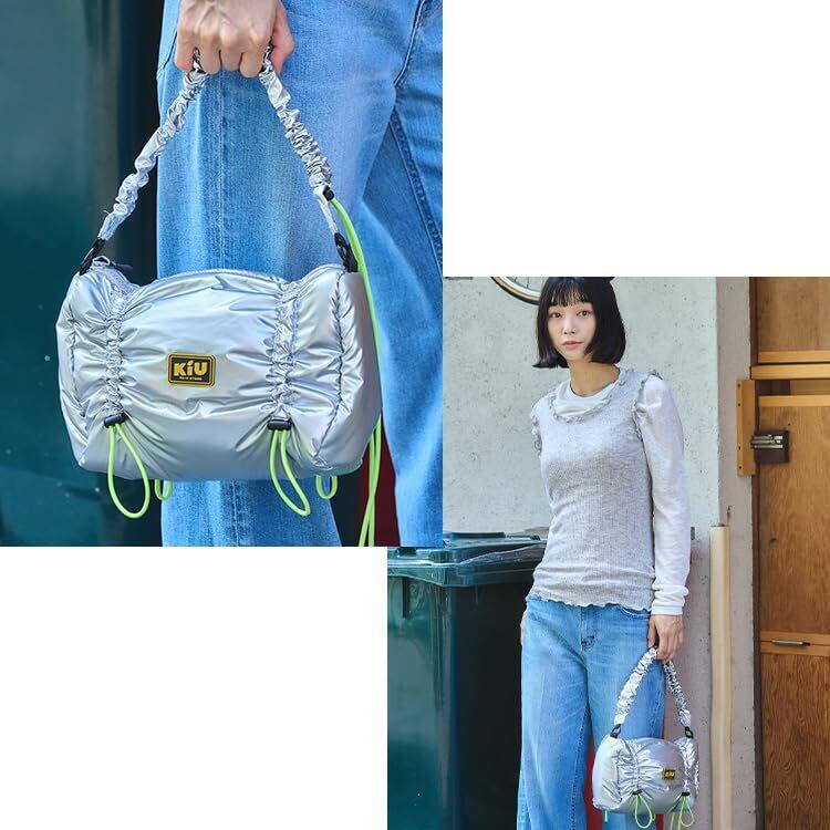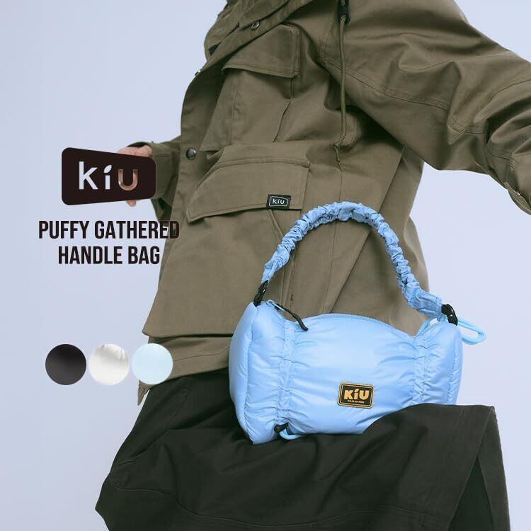 KiU キウ パフィーギャザーハンドルバッグ PUFFY GATHERED HANDLE BAG 防水 撥水 ハンドバッグ ギャザー 中綿 ドローコード 長さ調節 シンプル おしゃれ かわいい カジュアル アウトドア 秋冬 シルバー K486-955