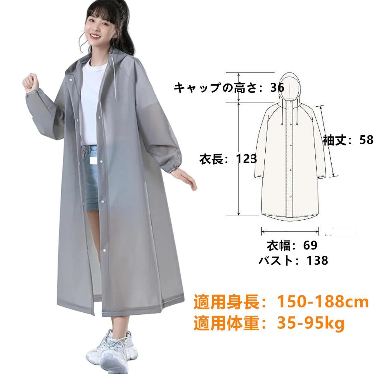 ✤【防水通気】ロングレインポンチョは軽い透明度があり、着心地が良く、おしゃれ。雨具は通気性と防水性もあり、雨の中でも快適でドライな状態を保つことができます。