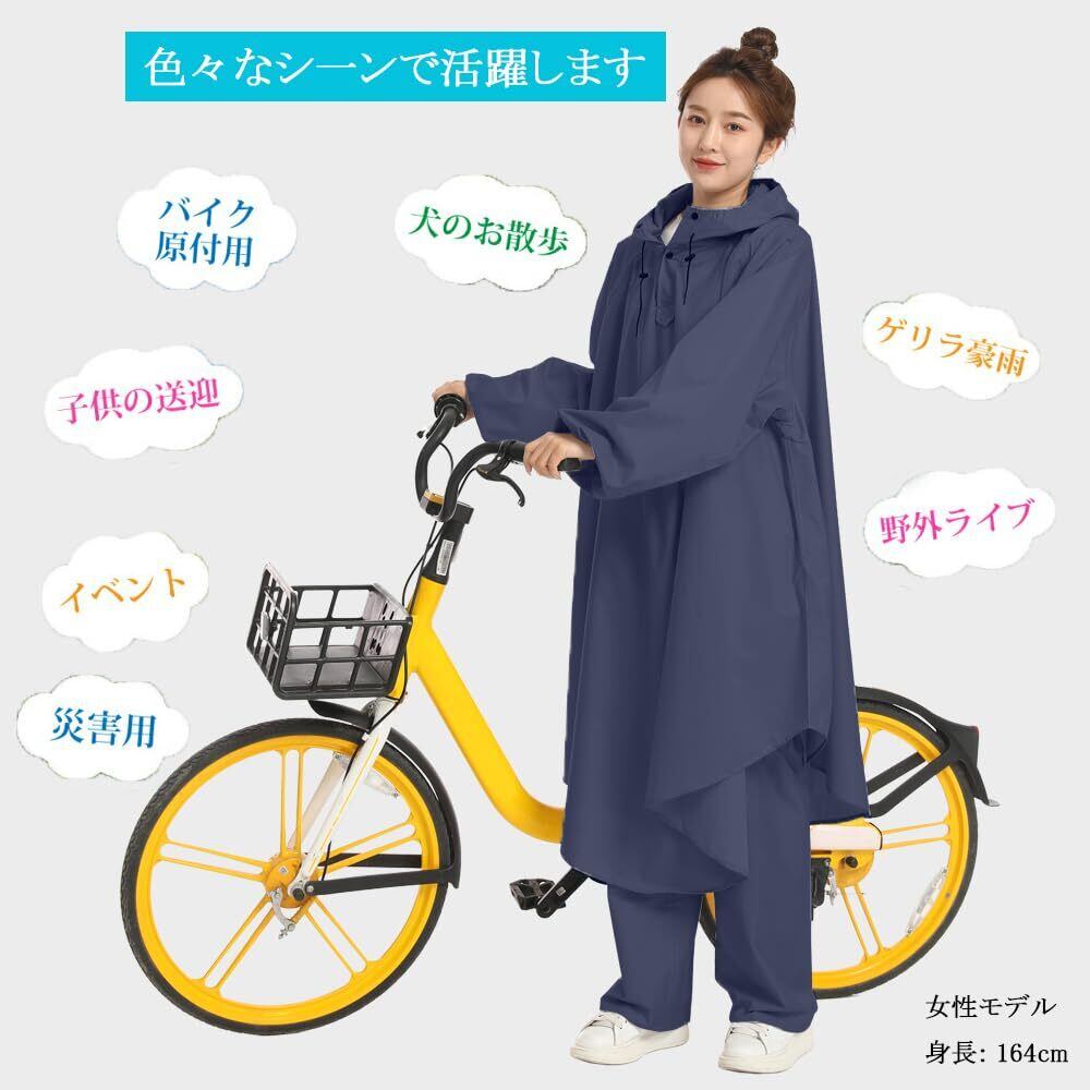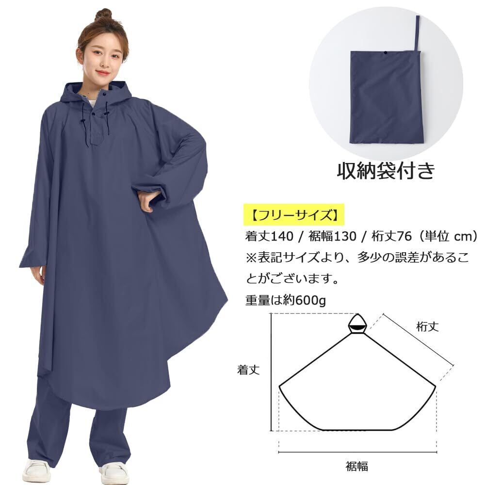 [BUQIREN] レインコート 自転車 レインポンチョ 大きいサイズ 通学 レディース メンズ 大きめ ロング リュック 透明バイザー 防水 雨具 雨カッパ キャンプ 携帯 通勤 ママ 保育園の送迎 袖あり バイク ポンチョ シンプル おしゃれ 収納袋付き