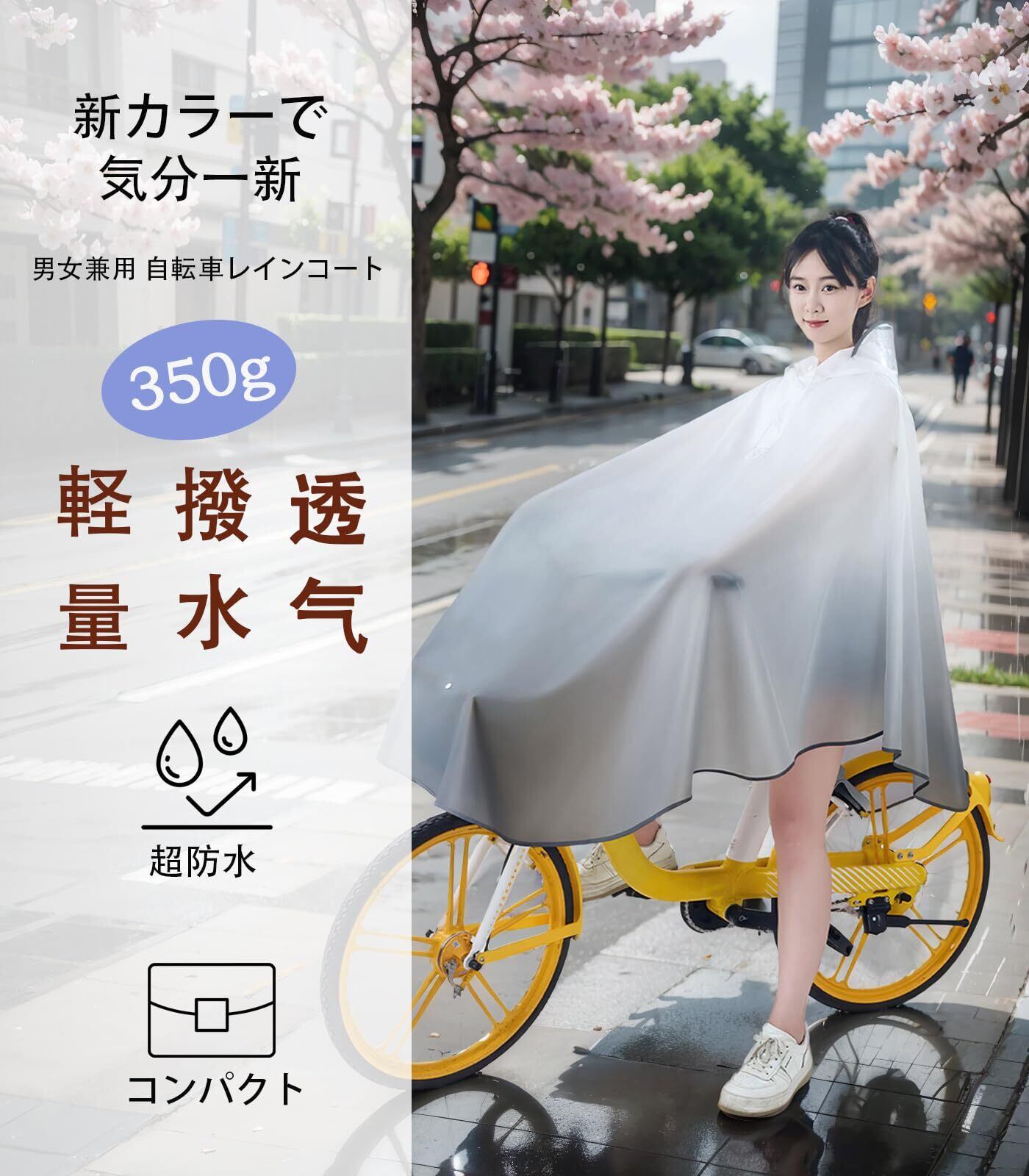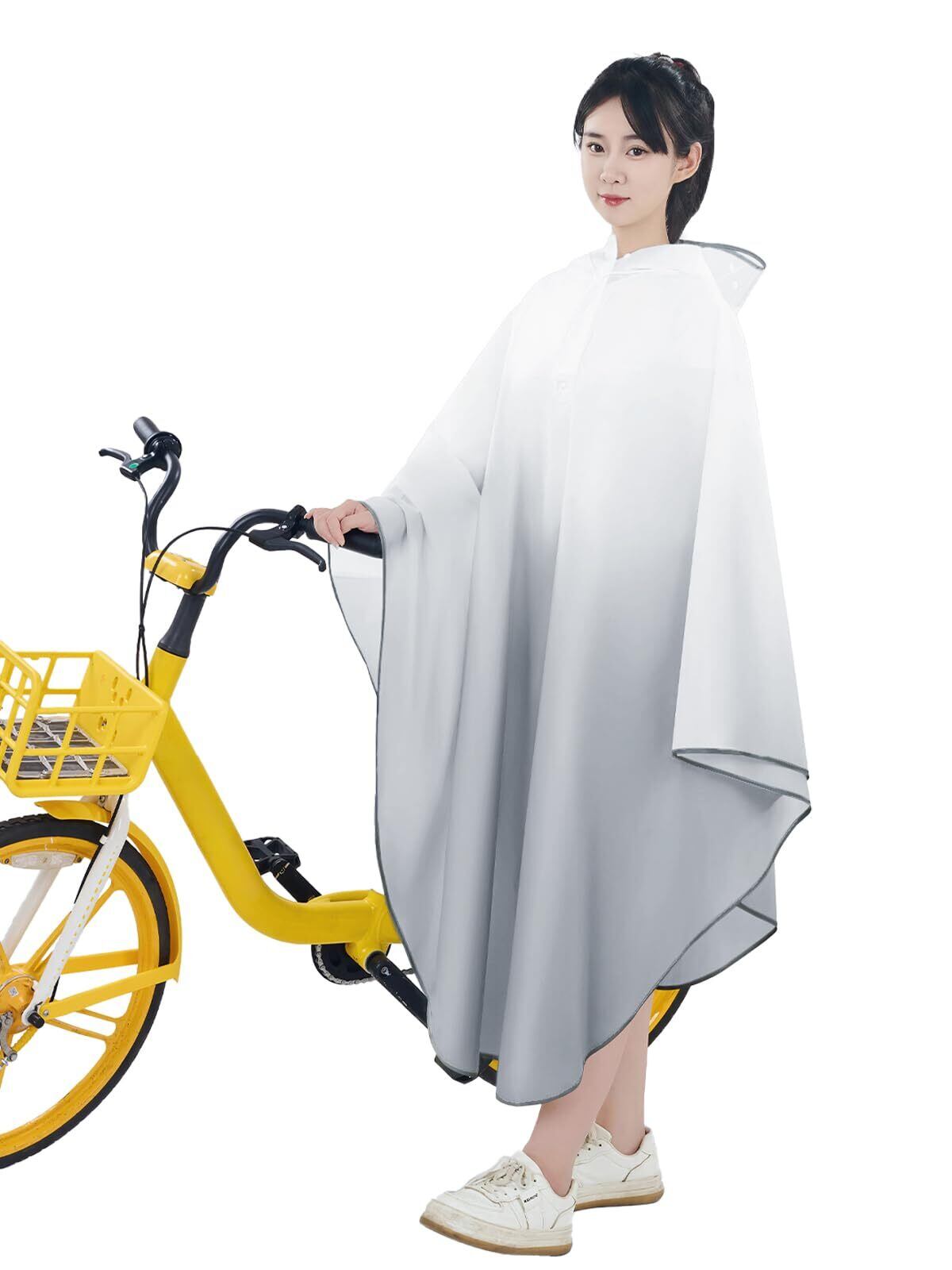 【おしゃれな防護、安全な自転車ライフ】トレンディなグラデーションカラーのレインコートで、雨の日でもお洒落を楽しめます。このレインポンチョ型レインコートは、延長されたスカート部分が自転車のかごを巧みに守り、濡れる心配もありません。高品質EVA素材を採用し、無臭で肌触りも柔らかく、防水・速乾性に優れた雨具です。さっと拭くだけでお手入れ簡単。革新的な調整可能な風よけバックル設計で、強風時でも前裾がめくれ上がる心配なく、安全な自転車走行をサポートします。蒸れない設計で、快適な着用感を実現したかっぱです。