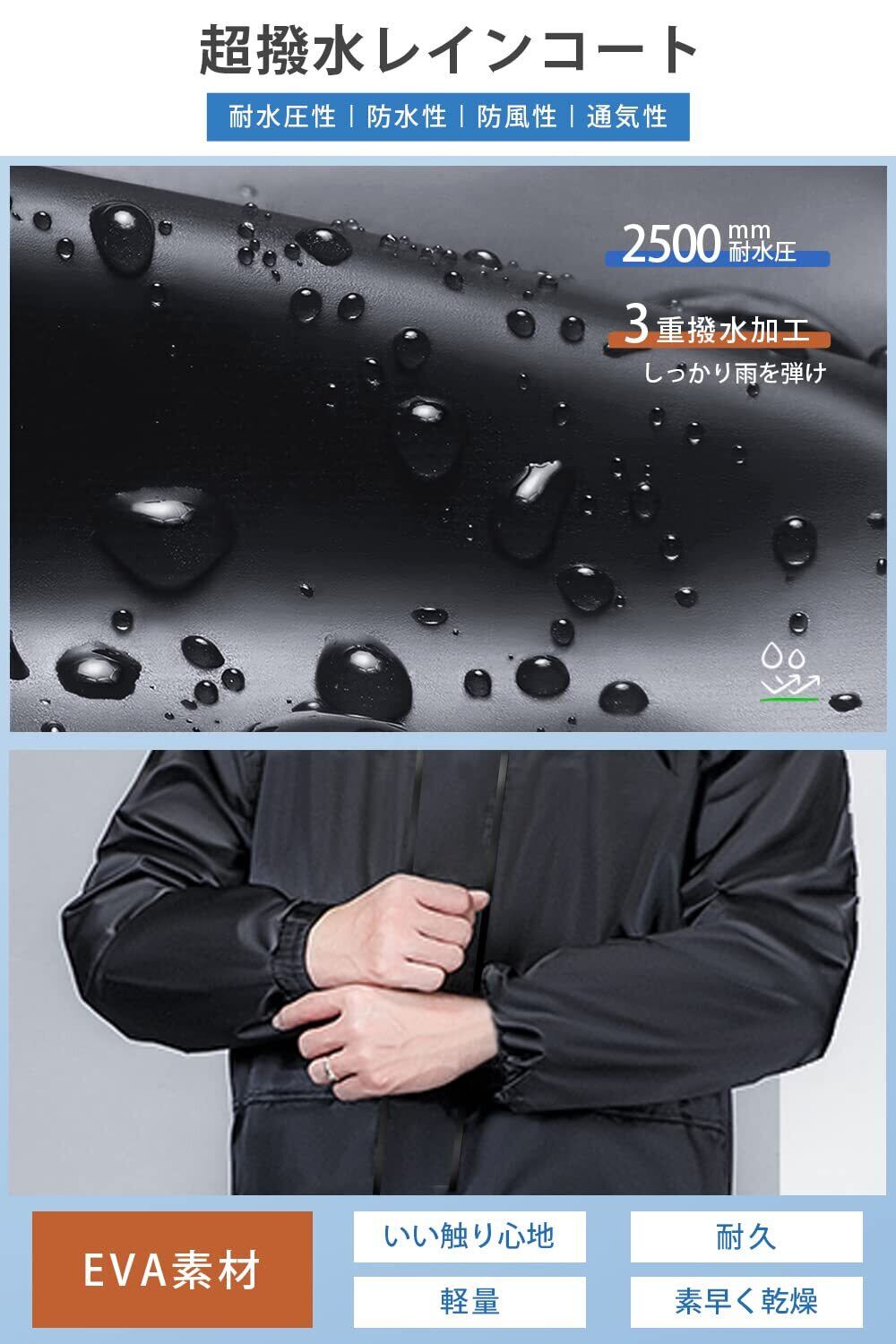【多層防水設計・超撥水素材】エコなEVA素材を採用し、3重撥水加工が施され、耐水圧2500mm、防水力が高く、丈夫で耐久性にも優れたレインコートです。加えて前立てはファスナー+ボタンの二重設計で、水や風の侵入を防げ、大雨でも心配することなく、旅行やアウトドア、レジャーに安心使用できます。収納袋付きで持ち運び便利、コンパクトに折りたたんで自宅/事務室/車の中に常備すれば、急な雨にも対応できます。