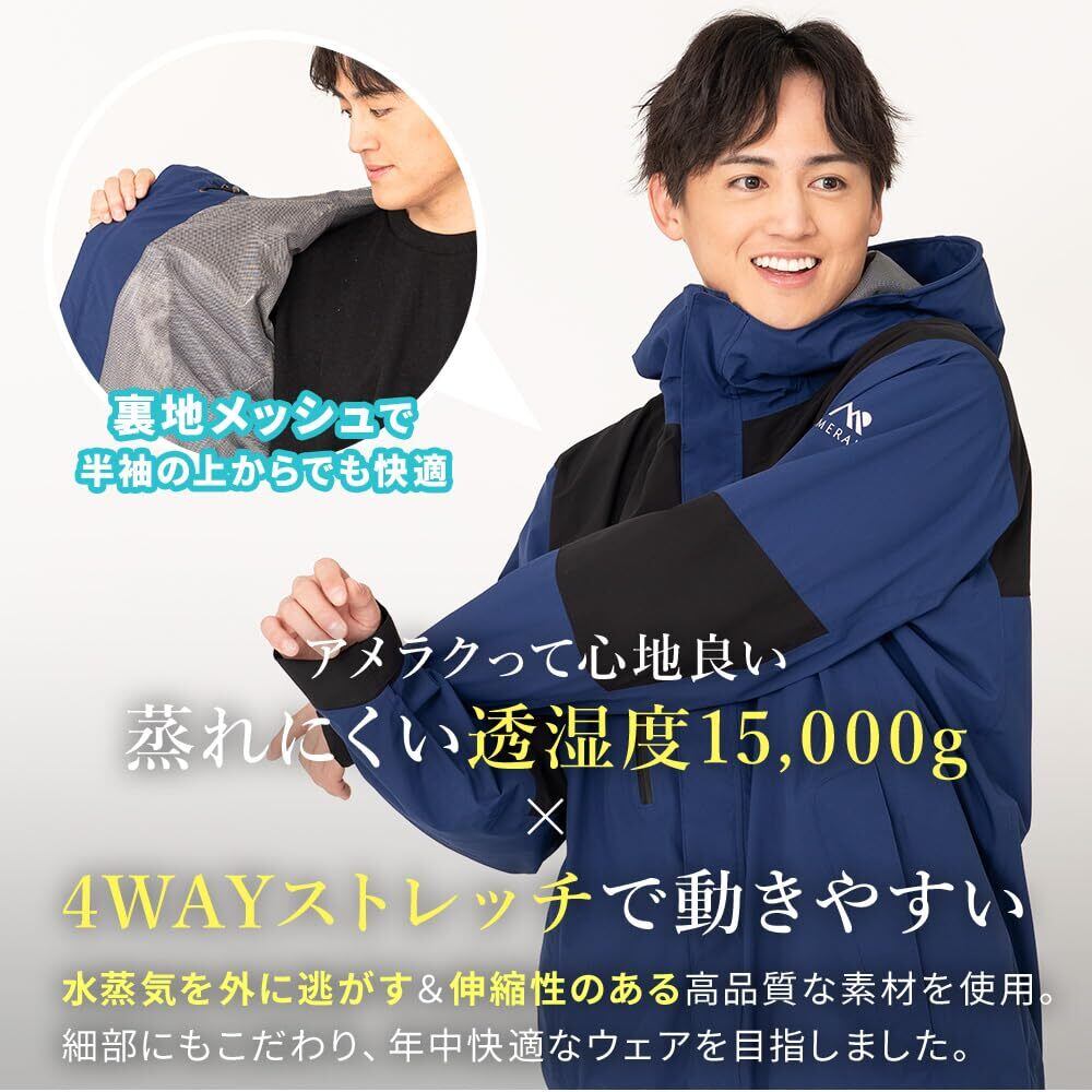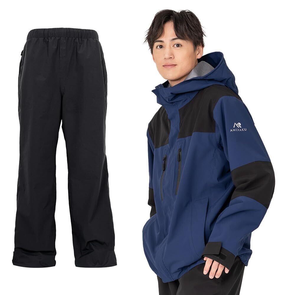 NNOUM(ノアム) レインウェア 上下セット プロも納得のレインスーツ メンズ レディース 自転車 レインコート ゴルフ 登山 透湿 防水 ストレッチ レインパンツ・ジャケット カッパ 雨合羽 雨具 AMERAKU アメラク NN25NSRA06M