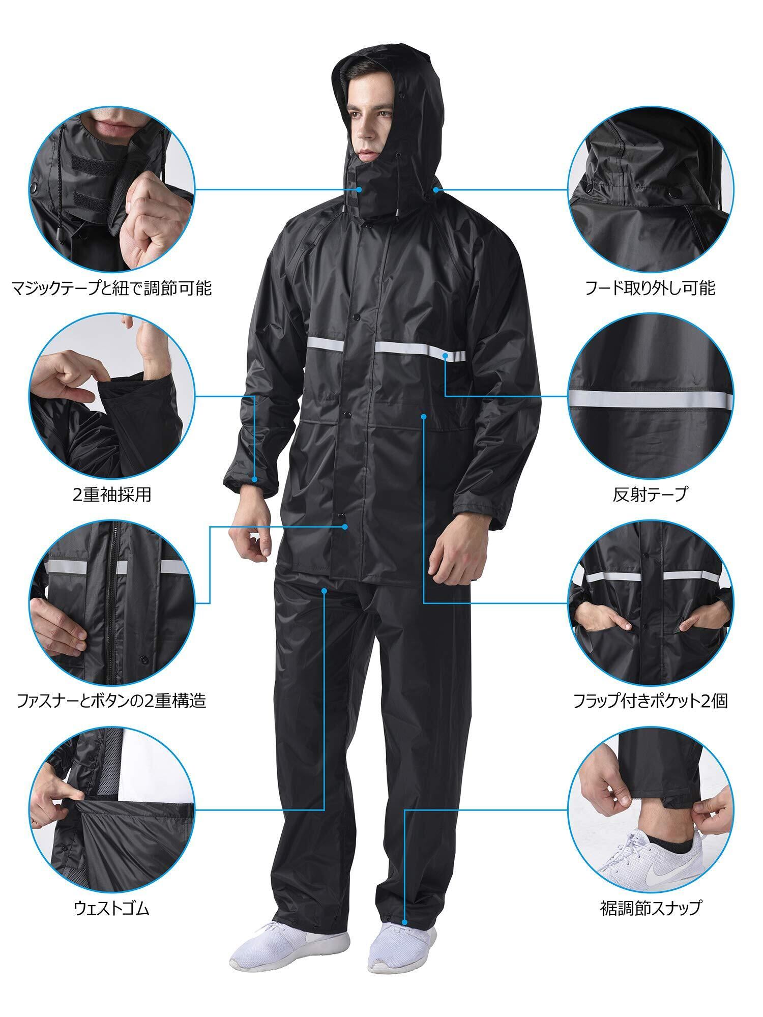 [Fosys] レインウェア 上下セット レインスーツ レインコート メンズ レディース 防水 撥水 アウトドア 自転車 通勤 通学