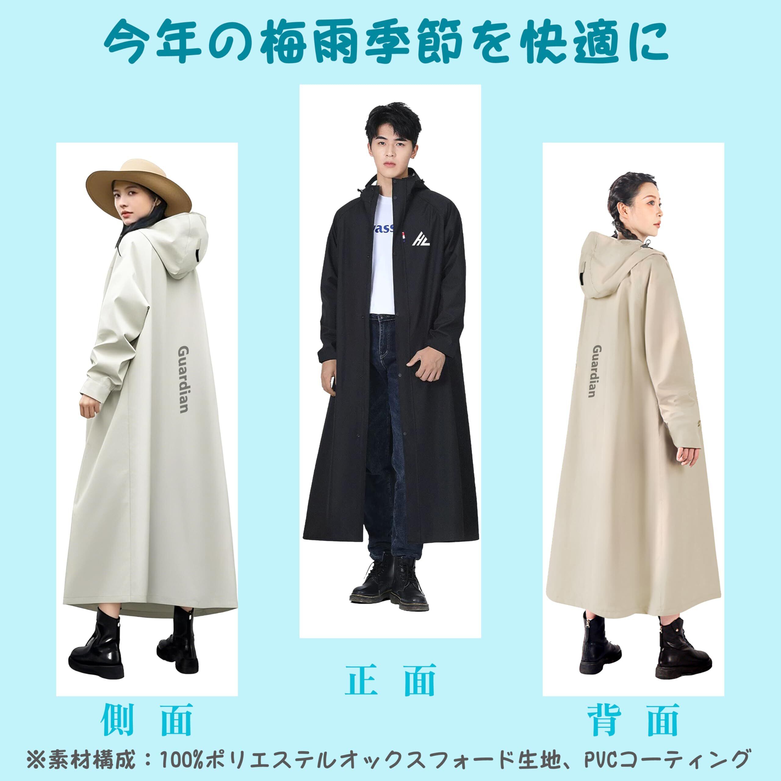 [Kaniya] レインコート 自転車 大きいサイズ リュック対応 ロング丈のおしゃれな レインポンチョ 軽量 通勤通学 防風防水 梅雨対策 豪雨対応 男女兼用 収納袋付き