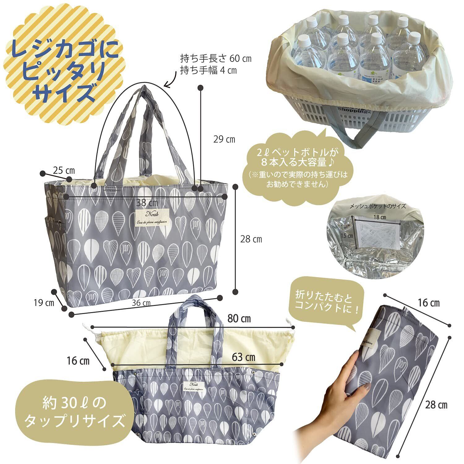 [Noah État de pleine satisfaction] ノア エコバッグ 保冷 大容量 ギフト 折りたたみ レジバッグ