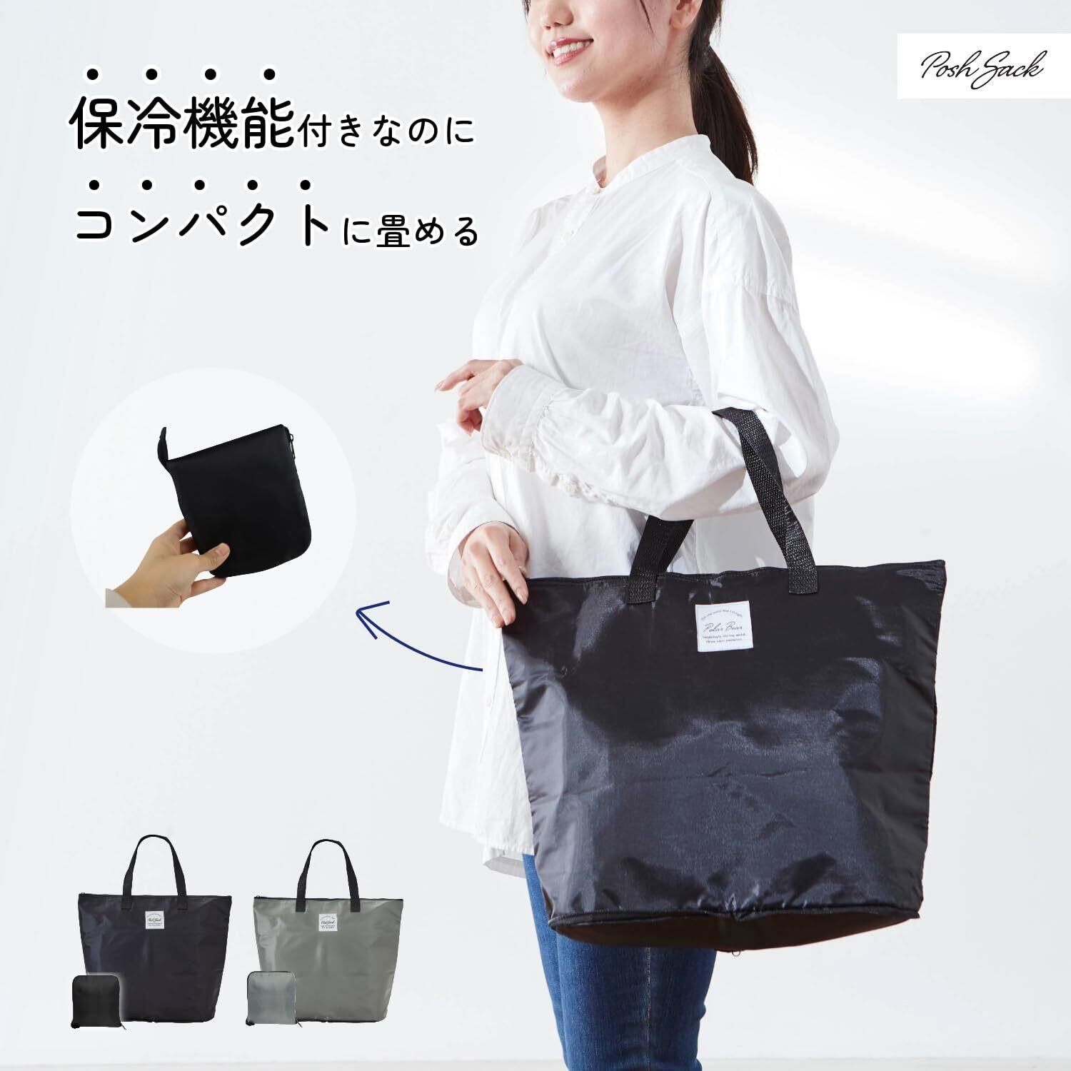 [FUJI JAPAN] Posh Sack コンパクト保冷エコバッグ 保冷バッグ エコバッグ 折りたたみ 軽量 10L 保冷 保温 環境配慮 SDGs ファスナー付き お買物バッグ 小さい Polar Bear 富士