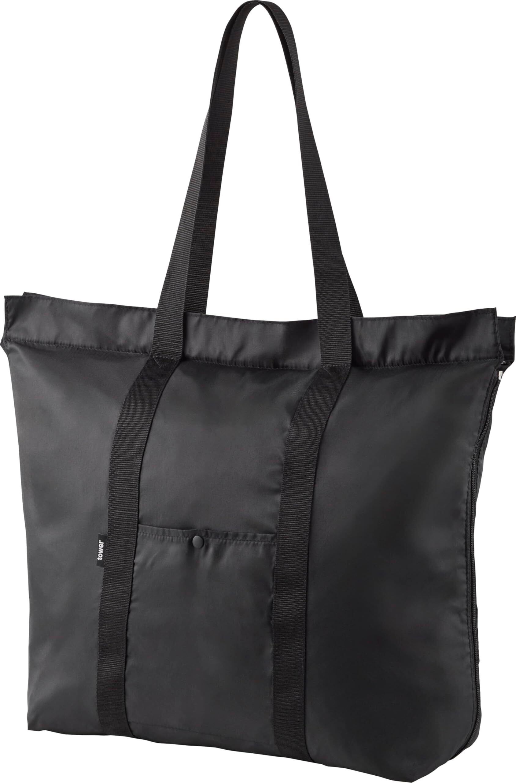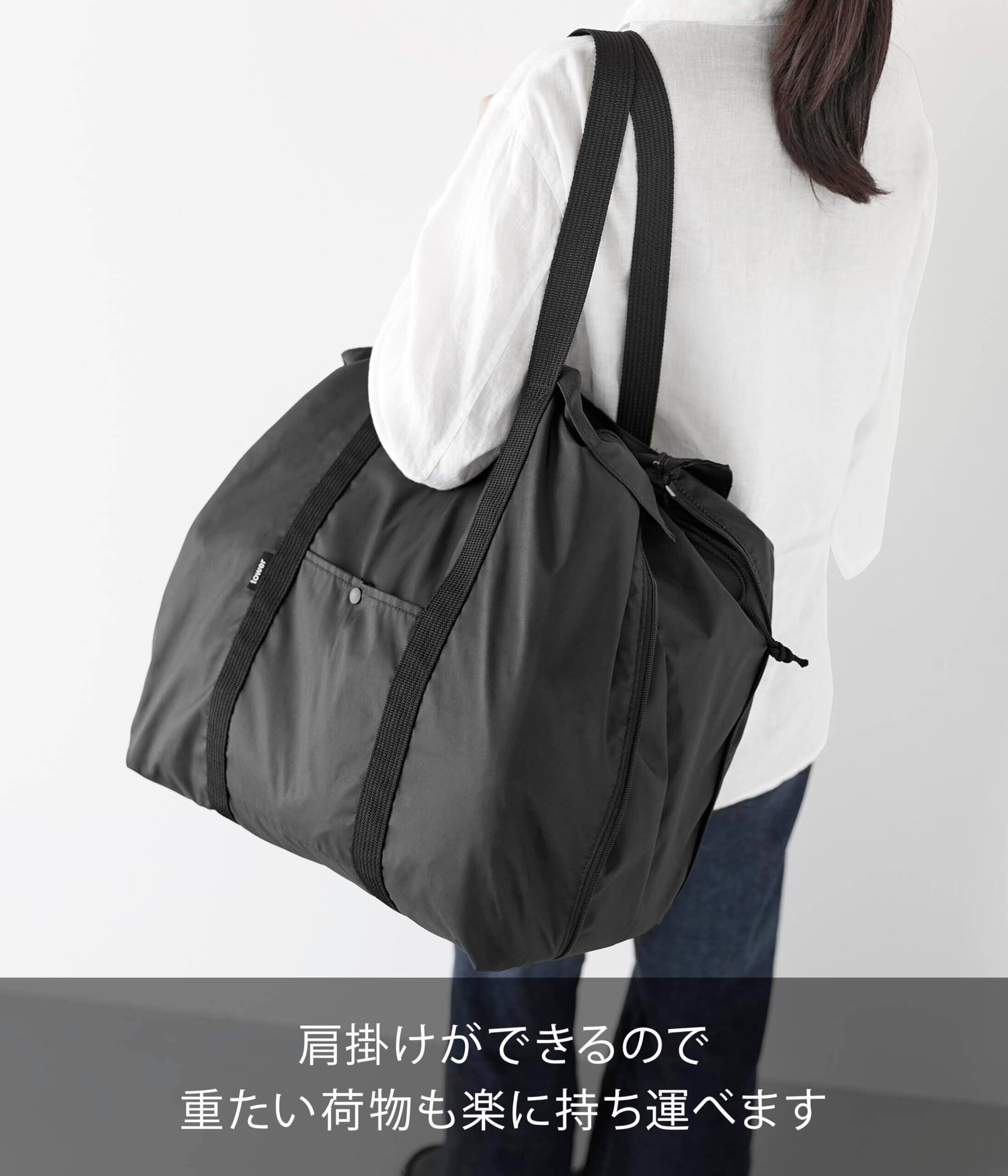 山崎実業(Yamazaki) 洗える 持ち帰り寿司 ・ ピザが入る レジかごかばん ブラック ファスナー閉じた時:W55×D14.5×H37.5cm(持ち手含まず) タワー tower 3WAY 買い物バッグ エコバッグ 保冷 保温 折りたたみ 2126