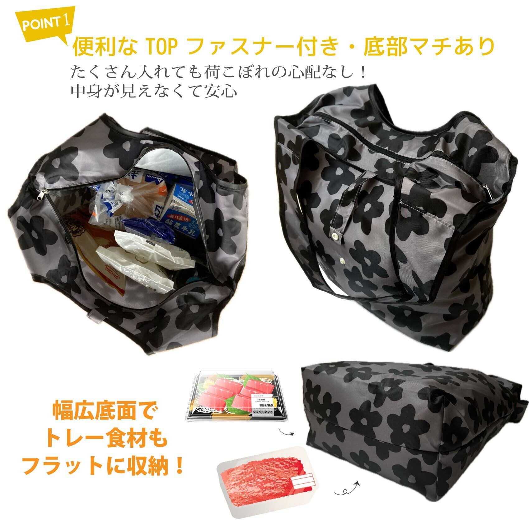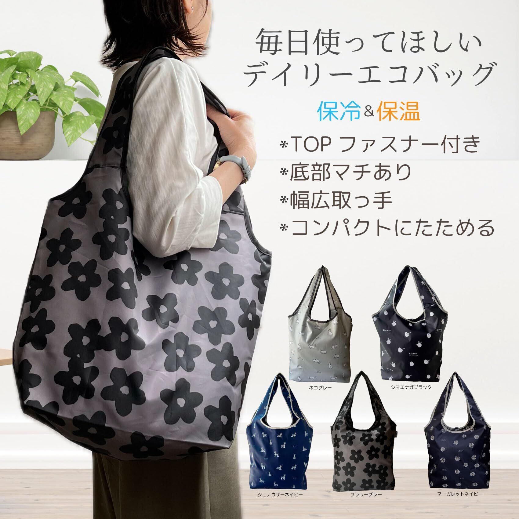 [Noah État de pleine satisfaction] エコバッグ 保冷 保温 折り畳み ファスナー付き 買い物バッグ コンパクト 大容量 肩掛け マチあり マイバッグ
