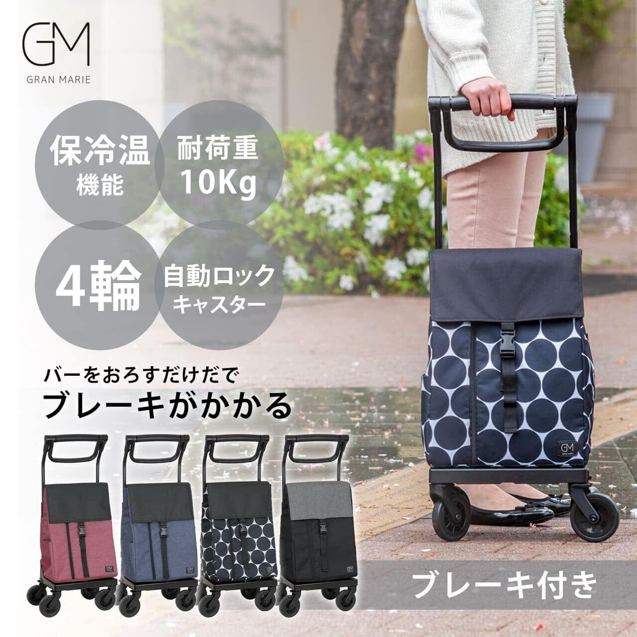 GRANMARIE[グランマリー] ショッピングカート ブレーキ付き 4輪 横押し 後ろ引き 2way 保冷 保温 買い物 保冷バッグ GM-124STDOTBK ドットブラック