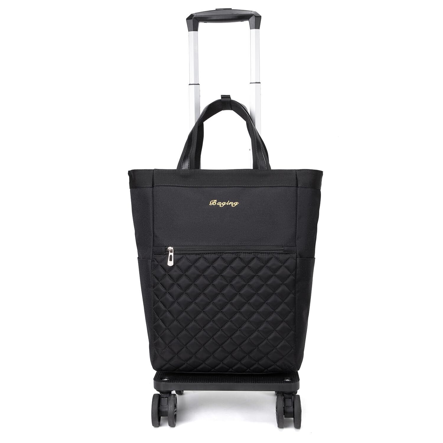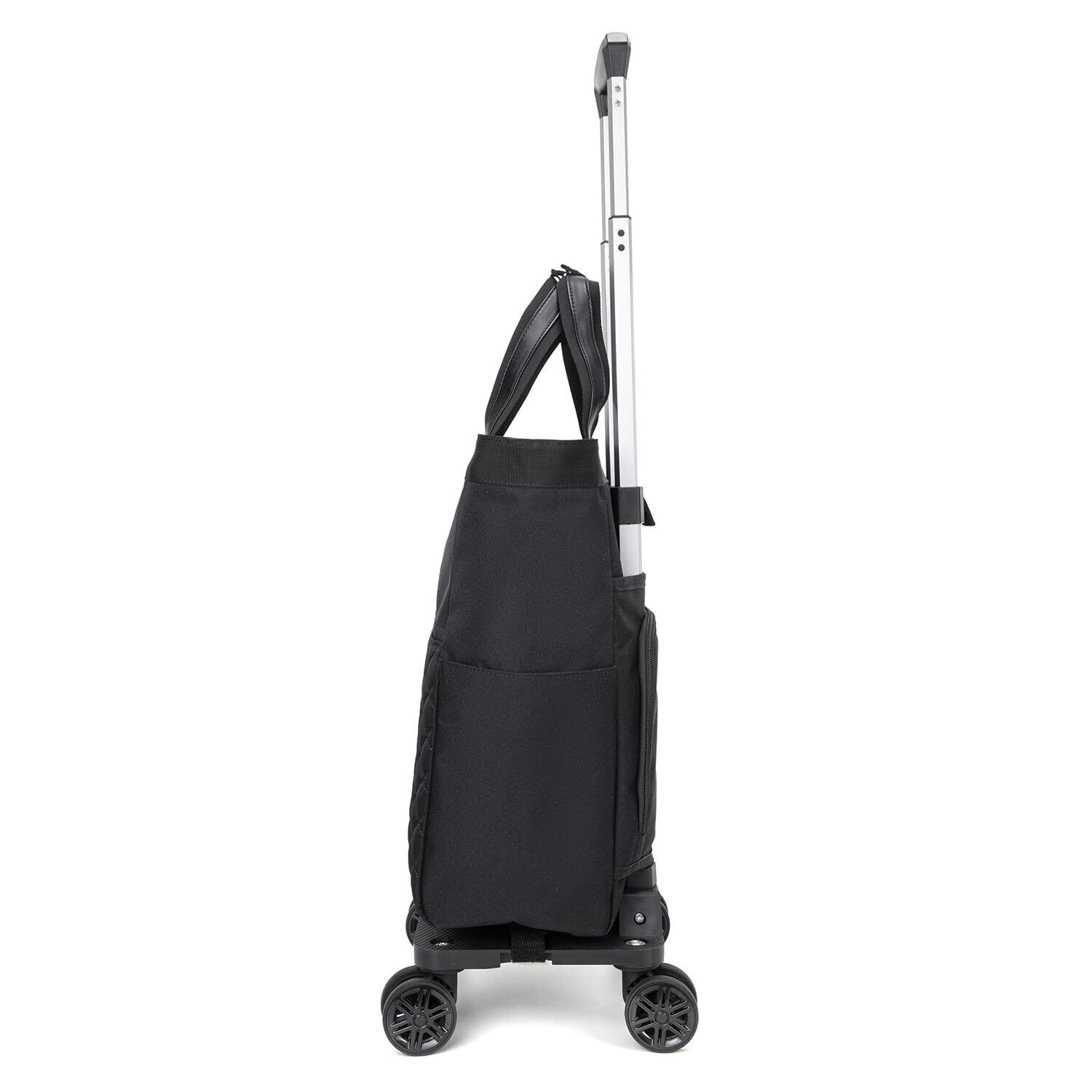 [神戸リベラル] バギング ショッピングキャリー 横押し 4輪ダブルキャスター 折り畳み 軽量 ショッピングカート キャスター交換可能 組み立て済み 601 (ブラック/キルティング)