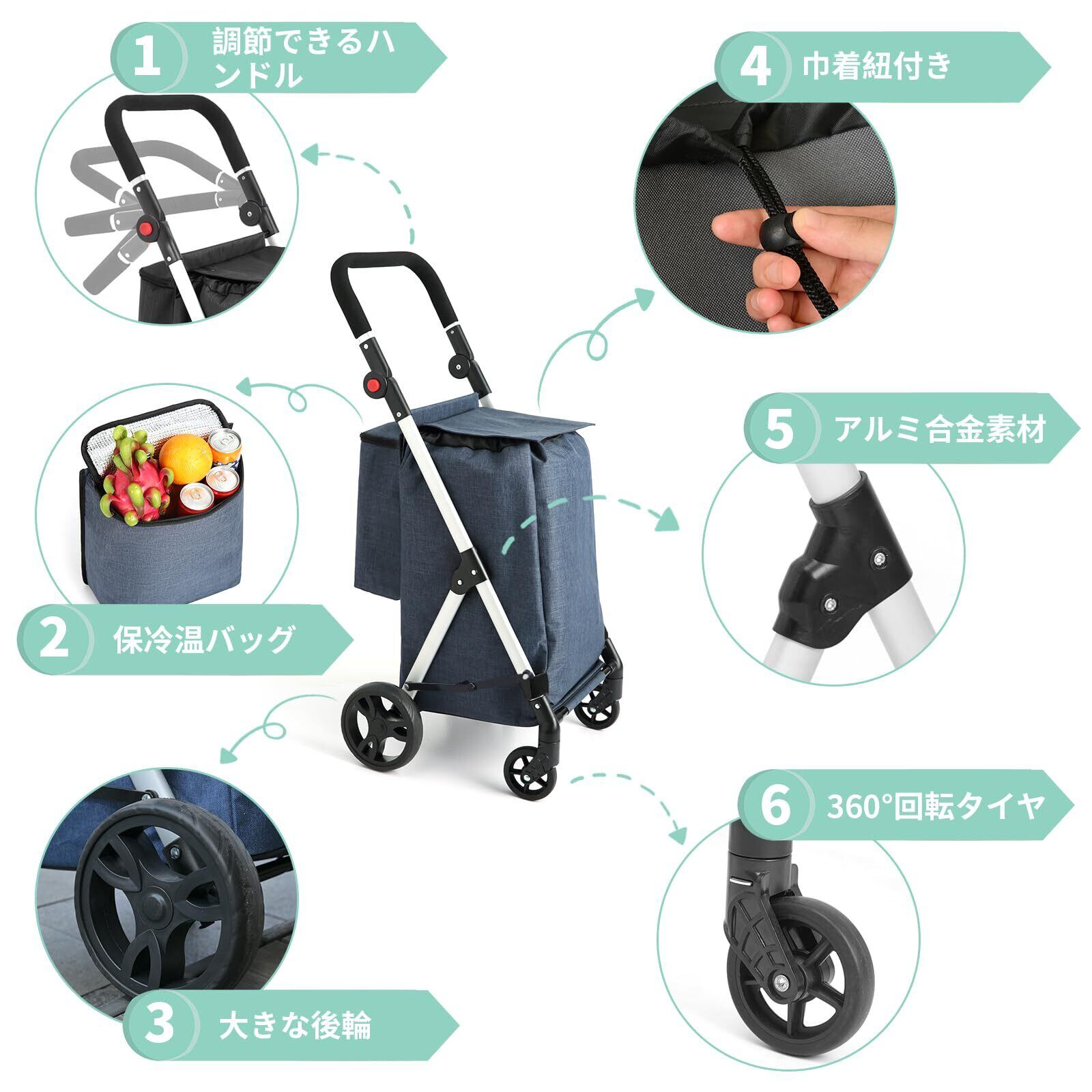 【食品を新鮮に保つ】:当社のショッピングカートの背面には4リットルの保冷ポケットが付いています,高品質の保冷素材を使用,外気温を効果的に遮断できる,食品の鮮度と美味しさを保つ,冷たい食べ物でも温かい食べ物でも,最高の食材状態を長期間お楽しみいただけます。