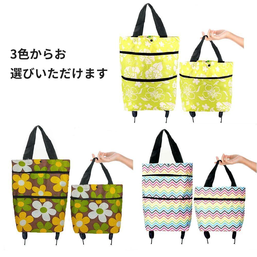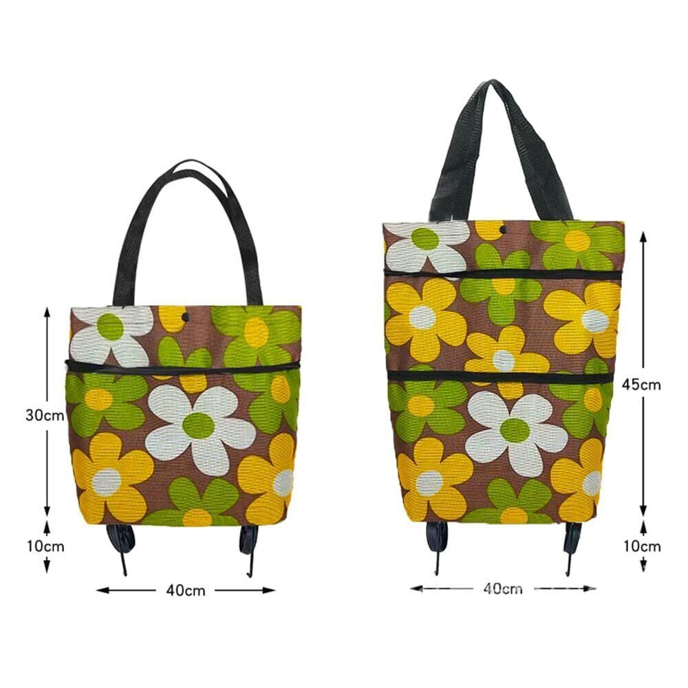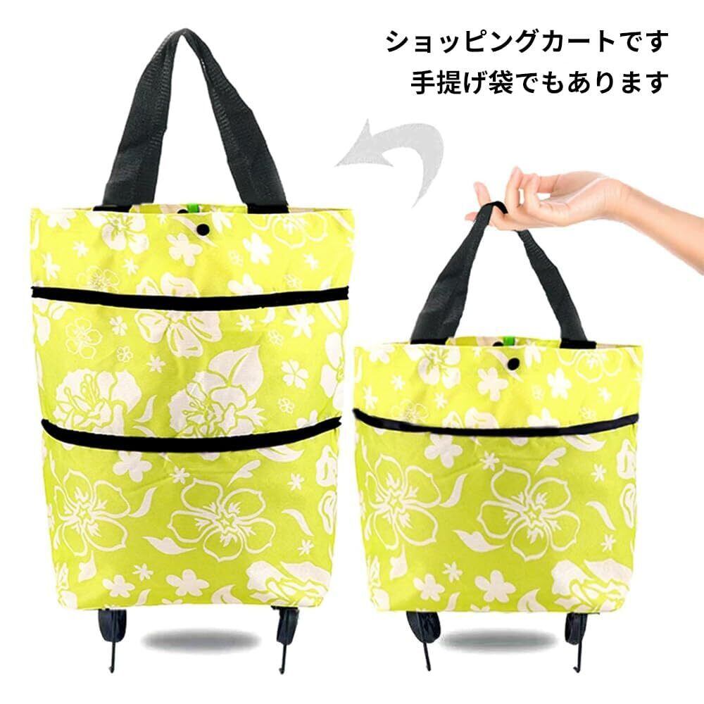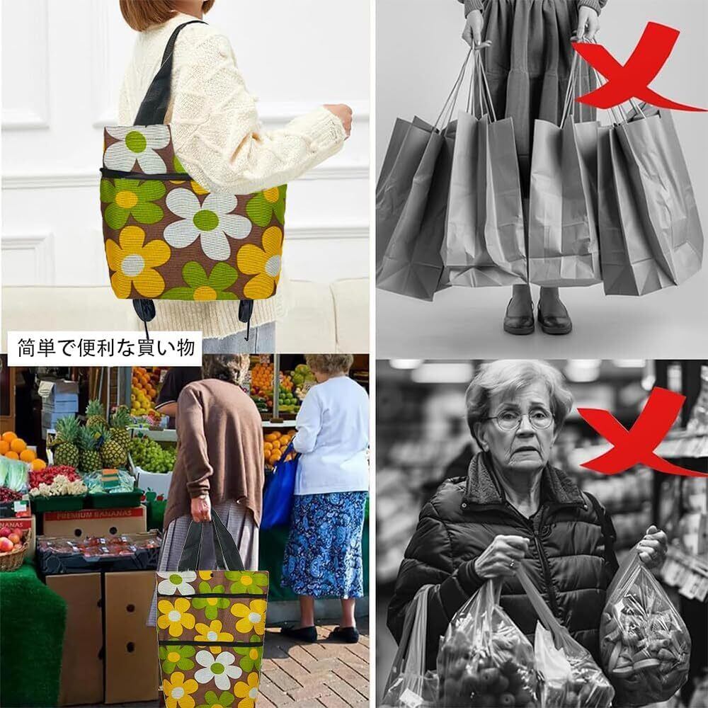 ショッピングカート 折り畳み式 軽量 エコバッグ 2輪キャスター付き買い物 おしゃれ 便利 コンパクト キャンプ 運動会 大容量 再利用可能な広々とした(緑の花)