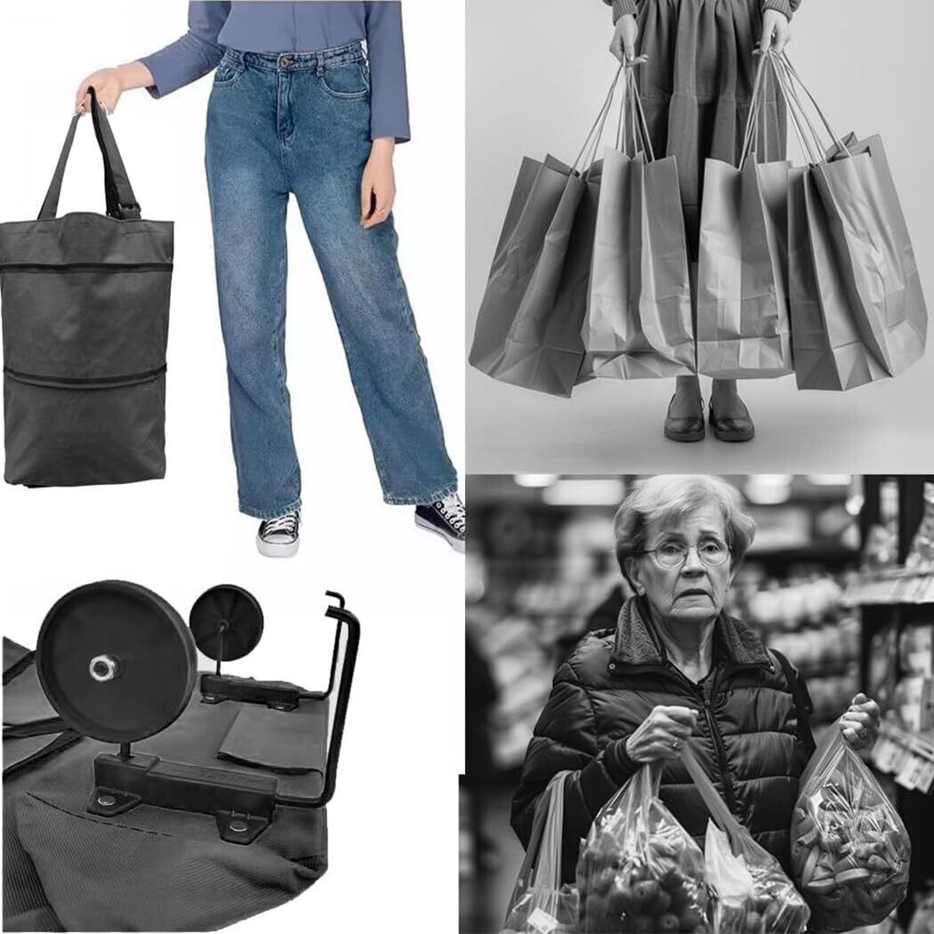 折りたたみ式ショッピングカート 軽量345g&耐荷重25斤 単肩バッグ&キャリーカート対応 41×15×46CM 大容量&省力&コンパクト収納で持ち運び楽々スーパーマーケット、アウトドア、旅行など、様々なシーンで活躍するショッピングキャリー