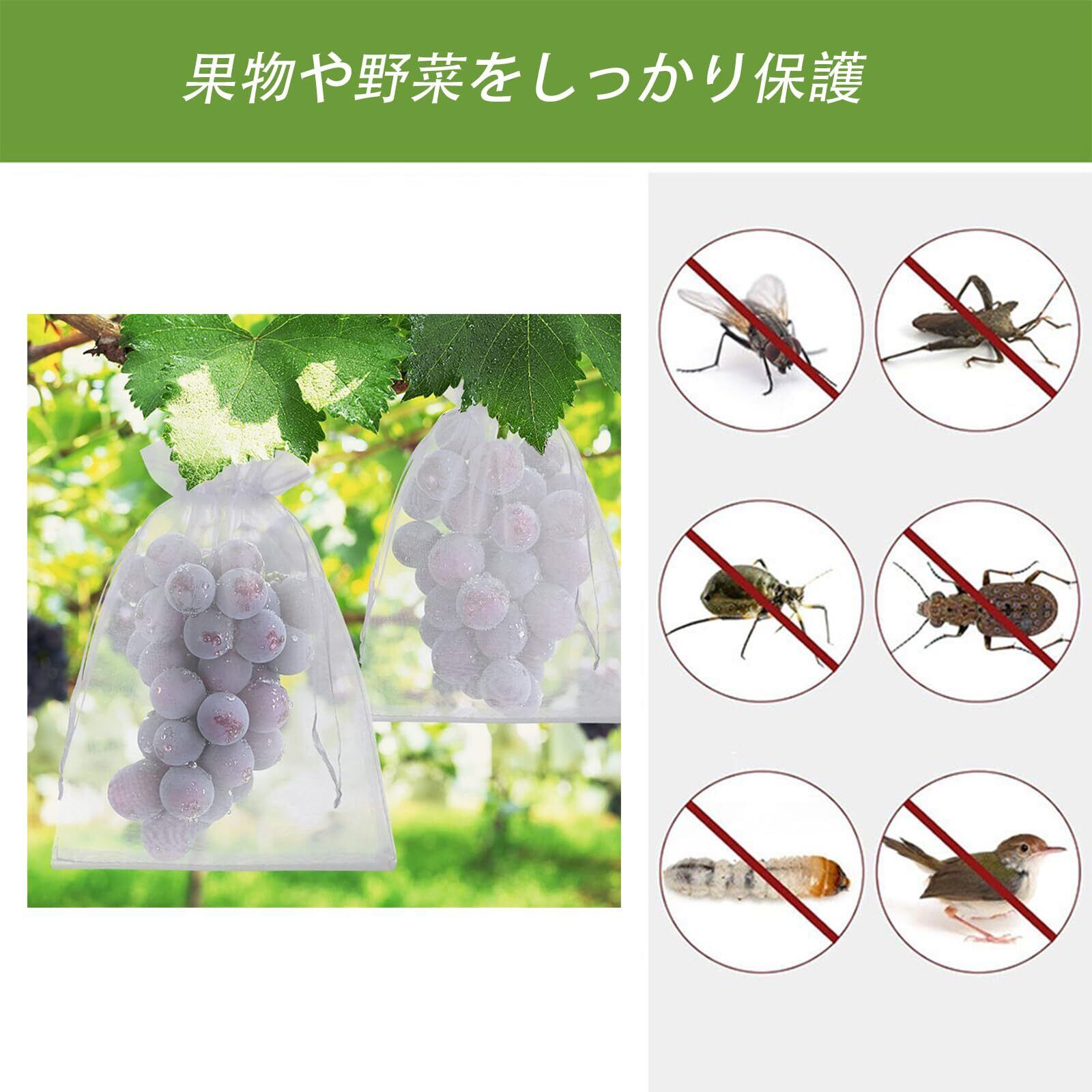 果物保護バッグ 防虫ネット 通気性 透明感のある保湿 環境に優しく耐久性に優れています ドローストリングデザイン 鳥虫害対策 野菜保護 農業 園芸用 保護バッグ(10*15cm 50枚)