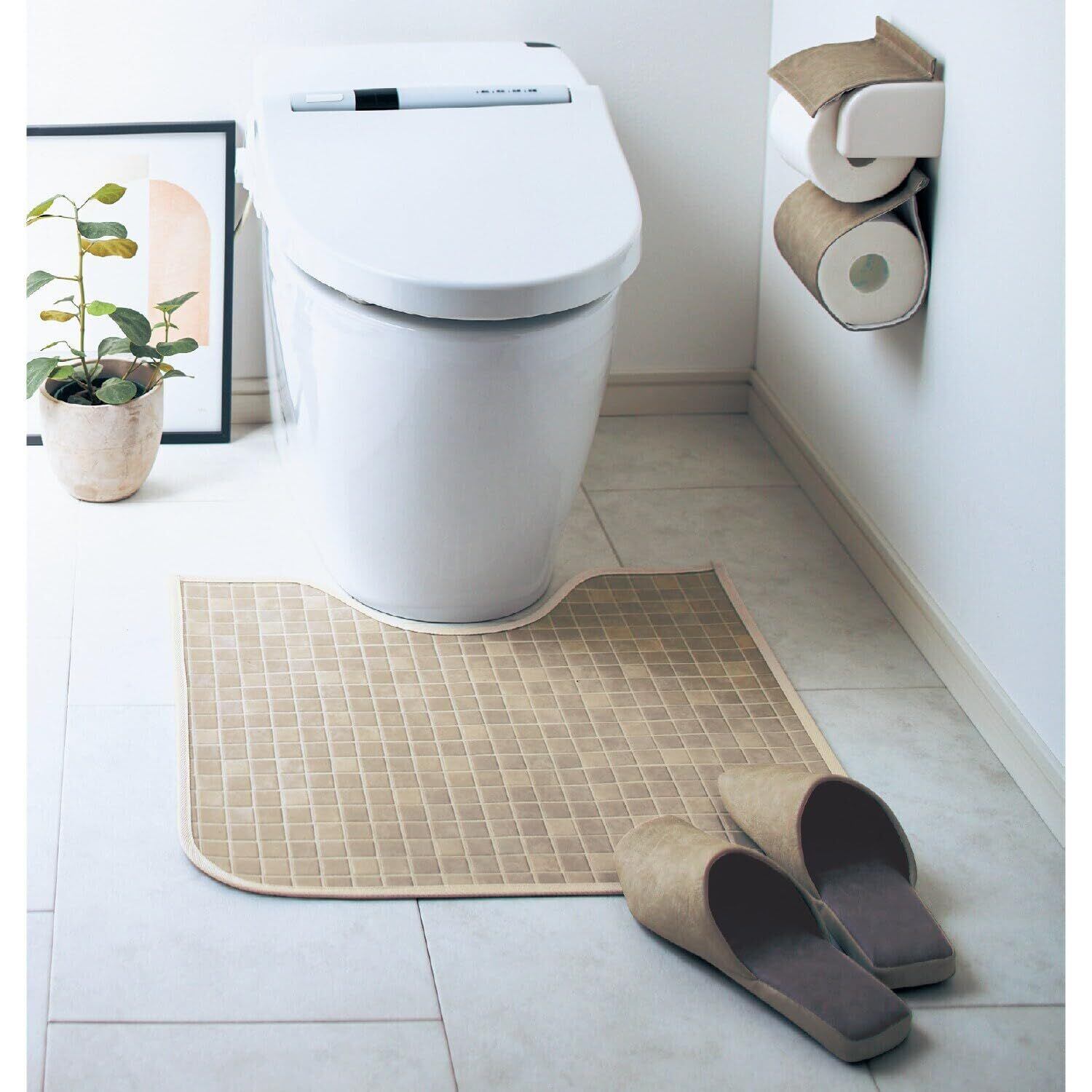 きれいに揃えられる、内側が直線のスリッパ ●トイレでもスリッパを揃える習慣を ●家族にも揃えてほしい人にオススメ ●内側のラインがまっすぐな直線の、ちょっとユニークな形状で、かかとからぴしっと揃えられます ●素材は汚れや水分に強いフェイクレザー ●布物と違ってさっと拭けるのがうれしいポイント ●裏面は発泡PVCの滑りにくい素材を使用