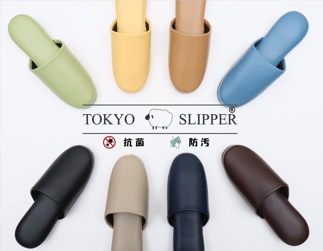 [TOKYO SLIPPER] 抗菌レザー調 ビニールスリッパ 吊り込み【5足セット】 厚底 抗菌加工済み 水拭き可 前閉じ スリッパ 滑り止め付き 男女兼用 ゲストスリッパ 業務用 来客用