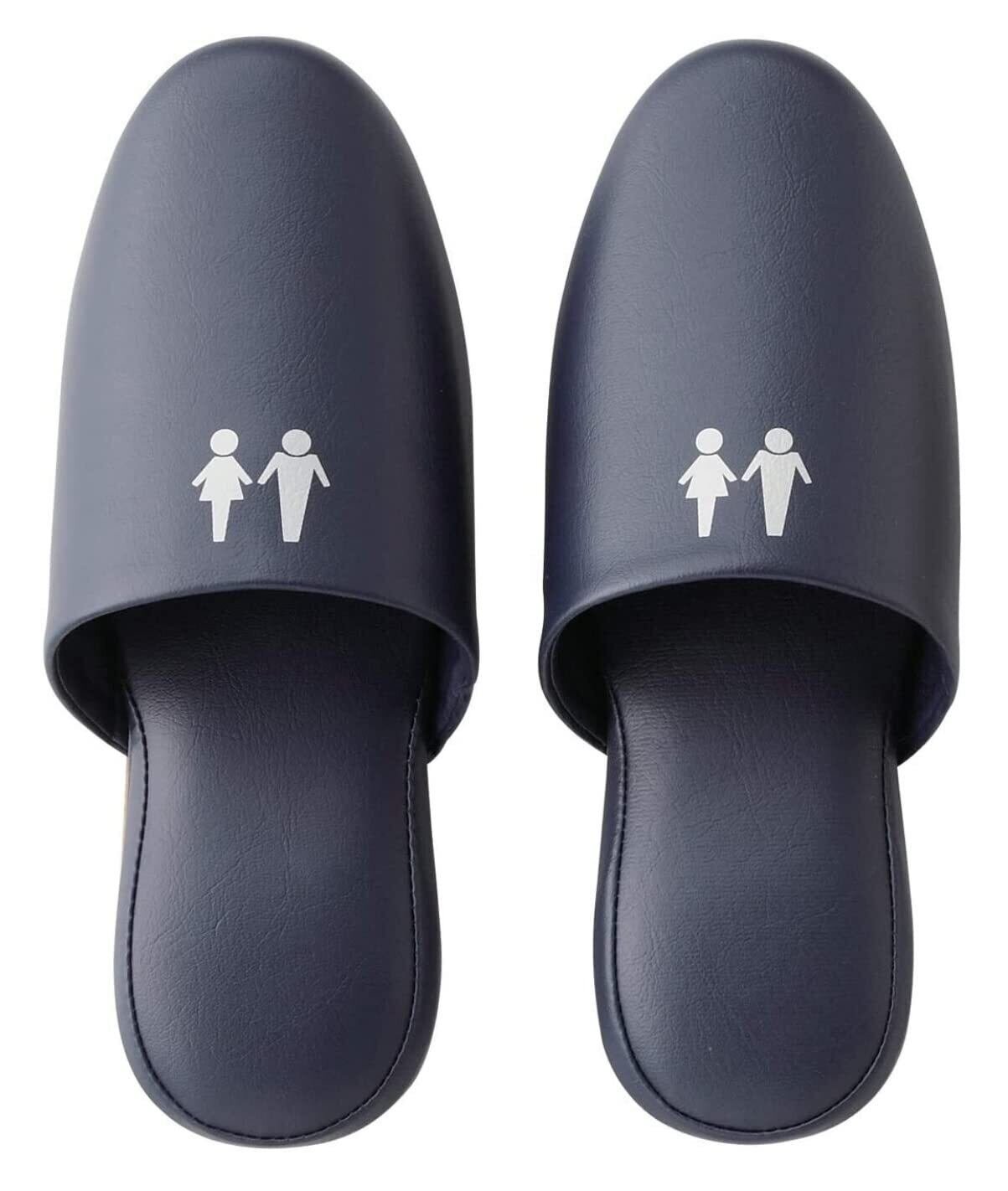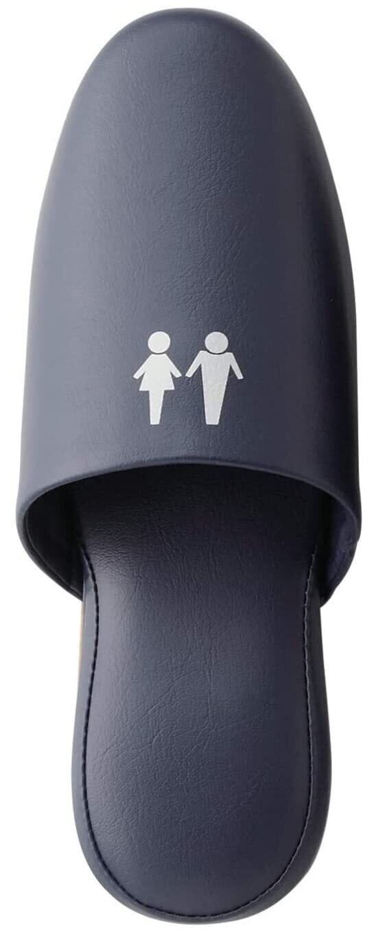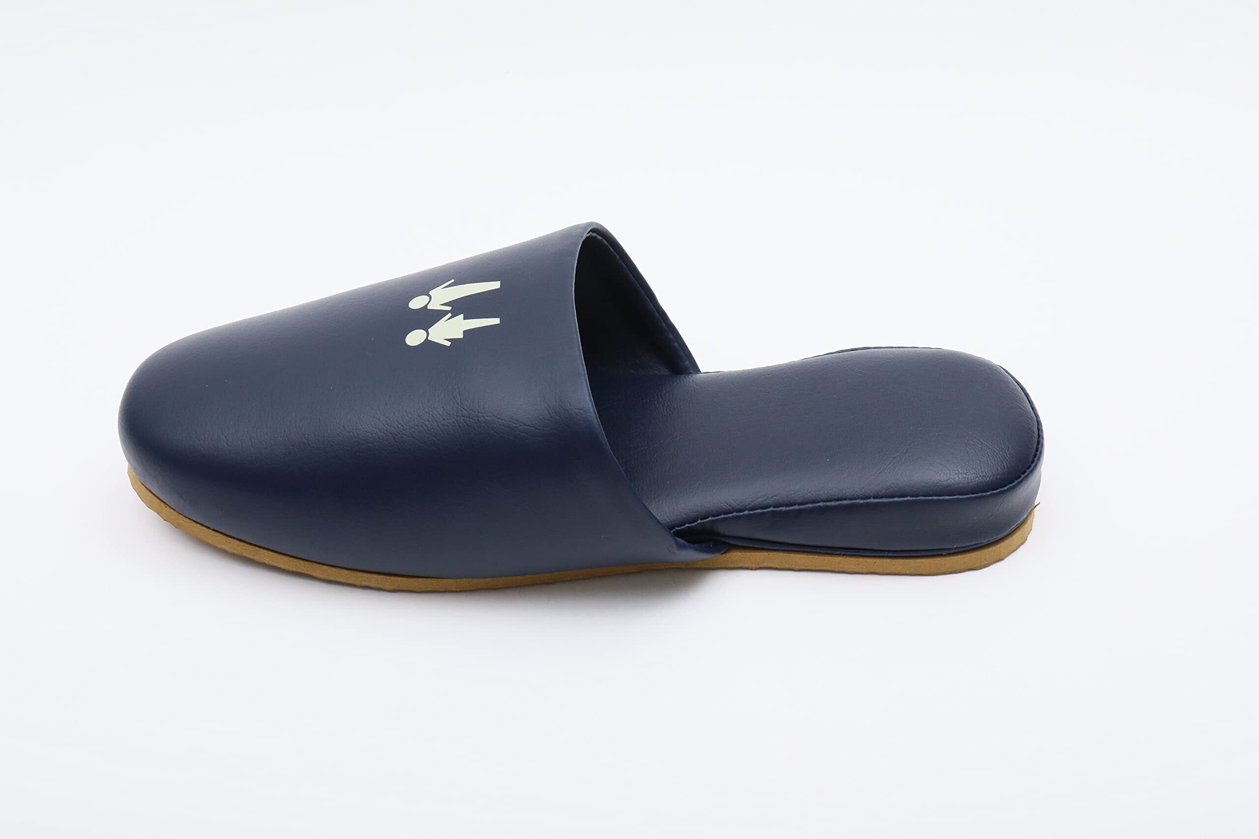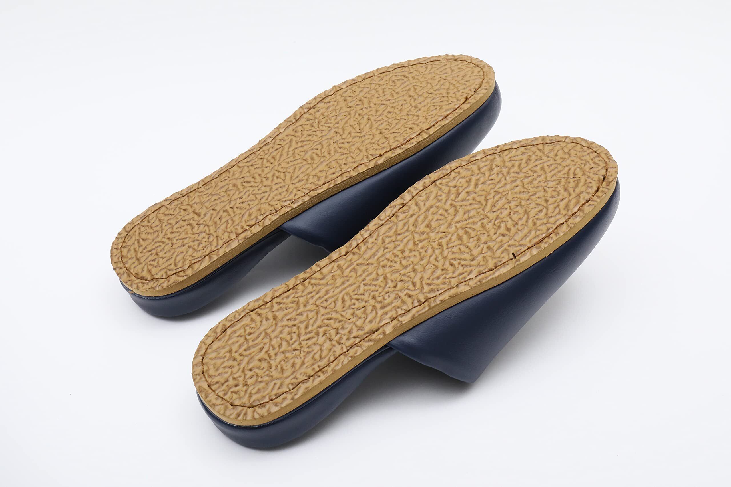 [TOKYO SLIPPER] 抗菌レザー調 トイレスリッパ 【1足セット】【合成底 シンプル 抗菌加工済み 水拭き可 】 厚底 メンズ レディース 滑り止め ビニールスリッパ 室内用 業務用 (ネイビー, L(25.5~27.0cm))