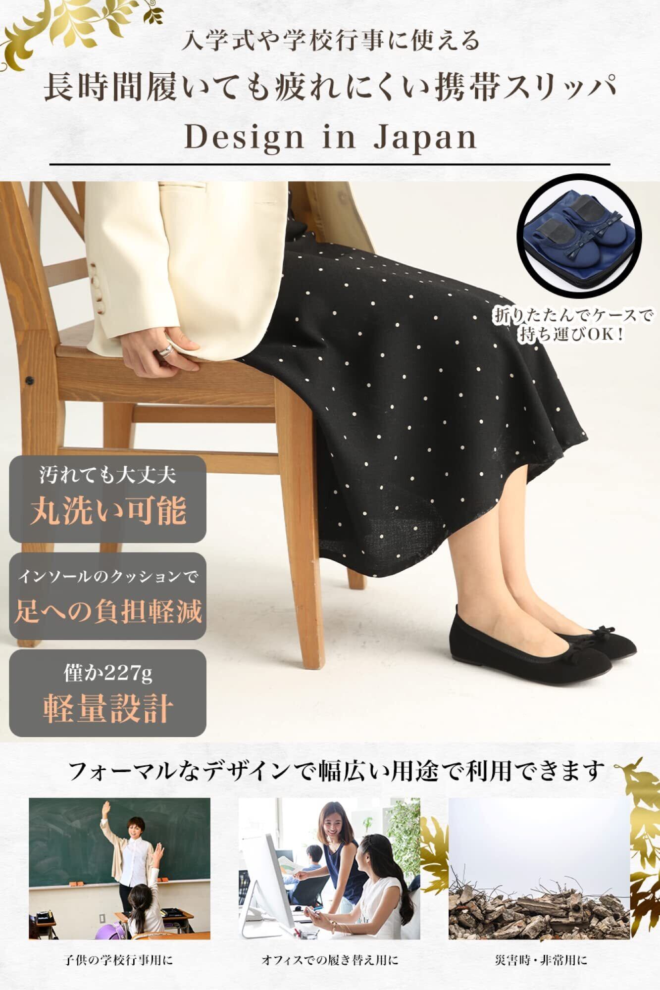 [nikalife] 携帯スリッパ レディース 折りたたみ 卒業式 入学式 参観日など学校行事で使えるフォーマルタイプ
