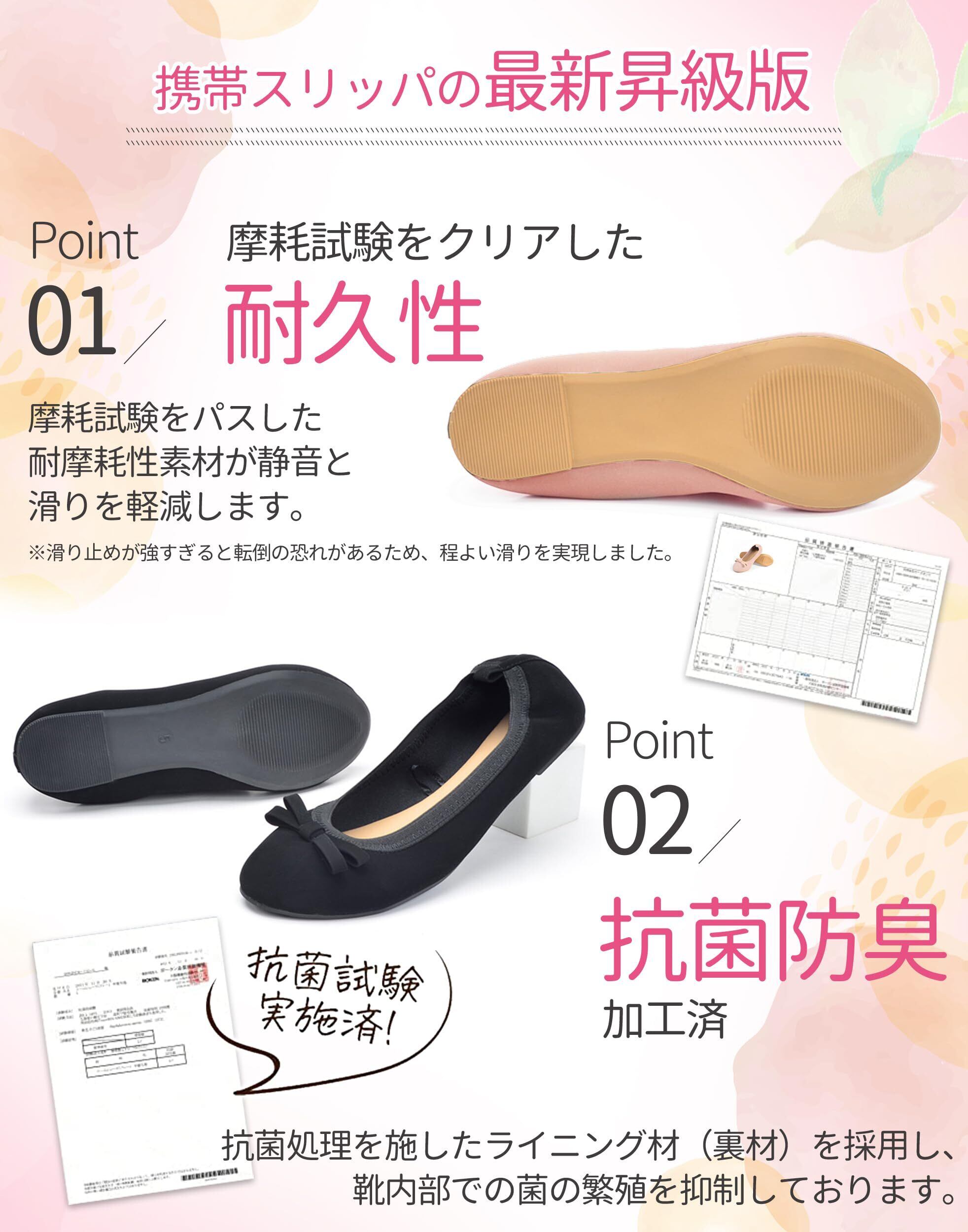 [Andeor] 携帯スリッパ レディース 【雲を歩くような履き心地・抗菌防臭防水加工・収納ポーチ付 】 スリッパ 折りたたみスリッパ 携帯シューズ 室内履きシューズ 超軽量 滑り止め 防音設計 丸洗いOK 卒業式 入学式 学校行事 参観日 出張 旅行