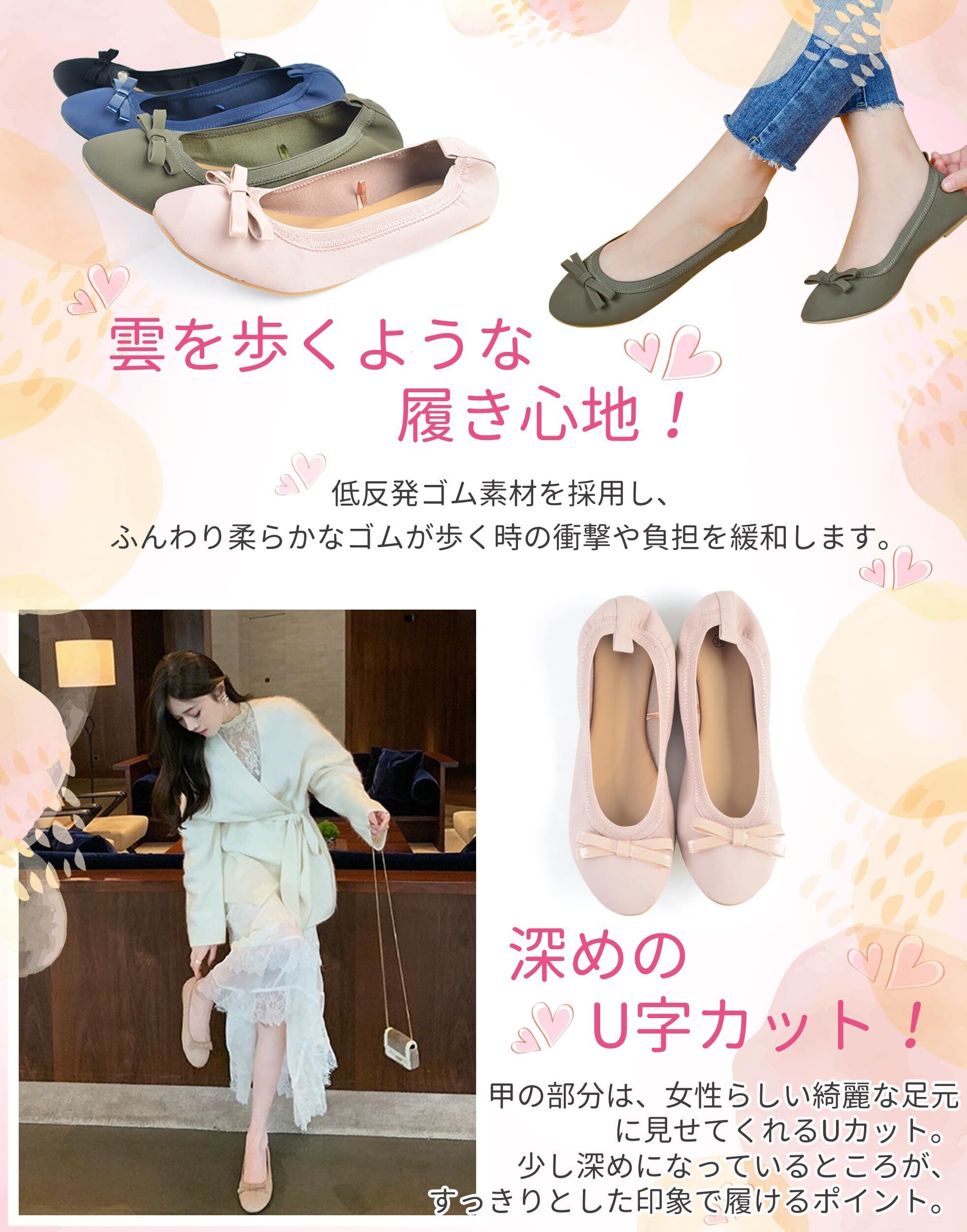 【雲を歩くような履き心地携帯スリッパ】長時間立っても疲れにくいクッション性のあるソールを使用しています。負担がかかりやすいスリッパクッション部分には、低反発ゴム素材を採用し、撥水性だけでなく履き心地にも優れています。 さらに、人間工学に基づいた1cmの厚底仕様により、もっと履きやすく、馴染みやすくなりました。携帯スリッパはギャザーを寄せたかかとにはゴム口があり、着脱が簡単です。Uカットの履き口で、足元をすっきり見せます!こもった臭いに悩まされることはありません。