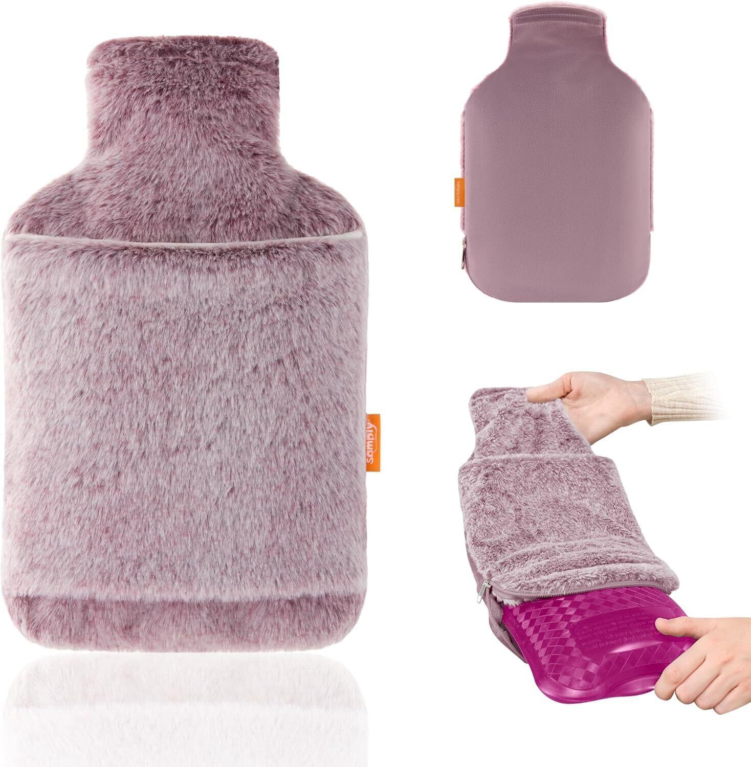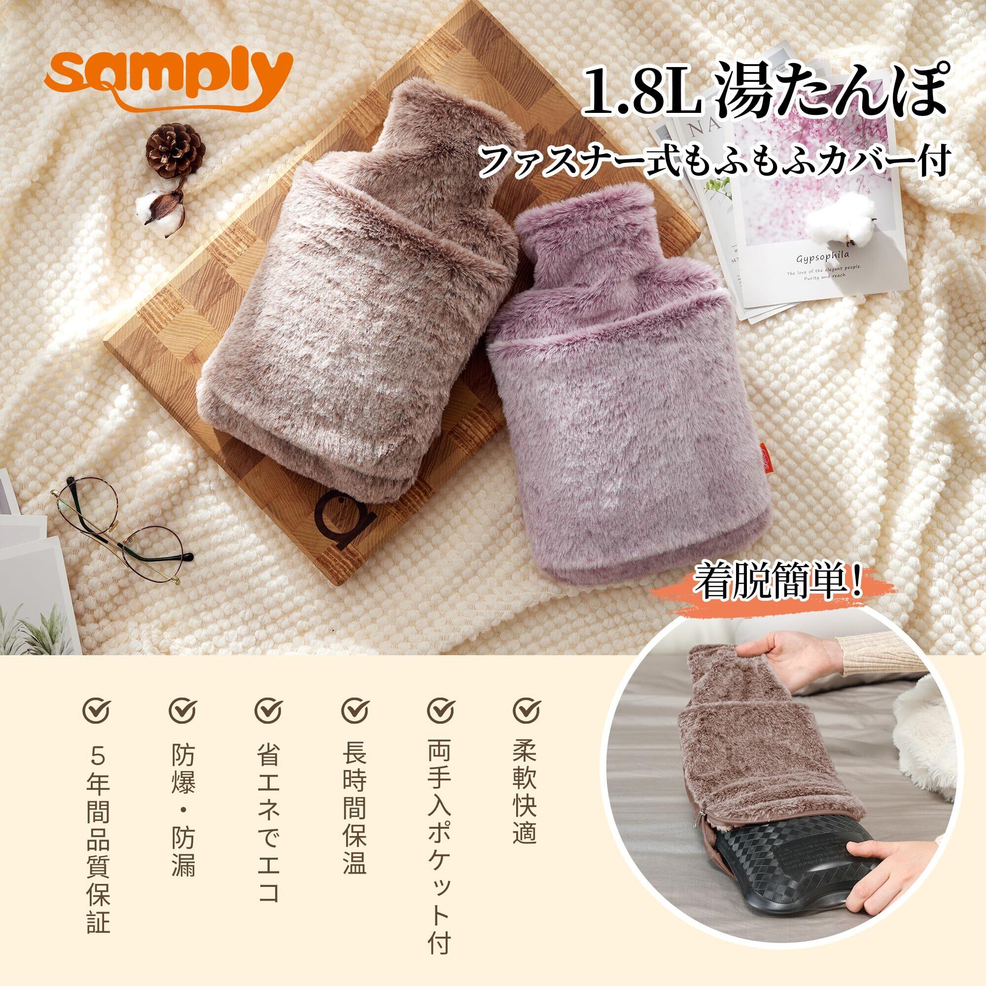 samply 湯たんぽ チャック付 ゆたんぽ お湯 注水式 容量1.8L かわいい 柔らかい ポケット式 カバー付き 子供 エコ 省エネ 防寒グッズ 冷え対策 ギフト(ピンク 1.8L)