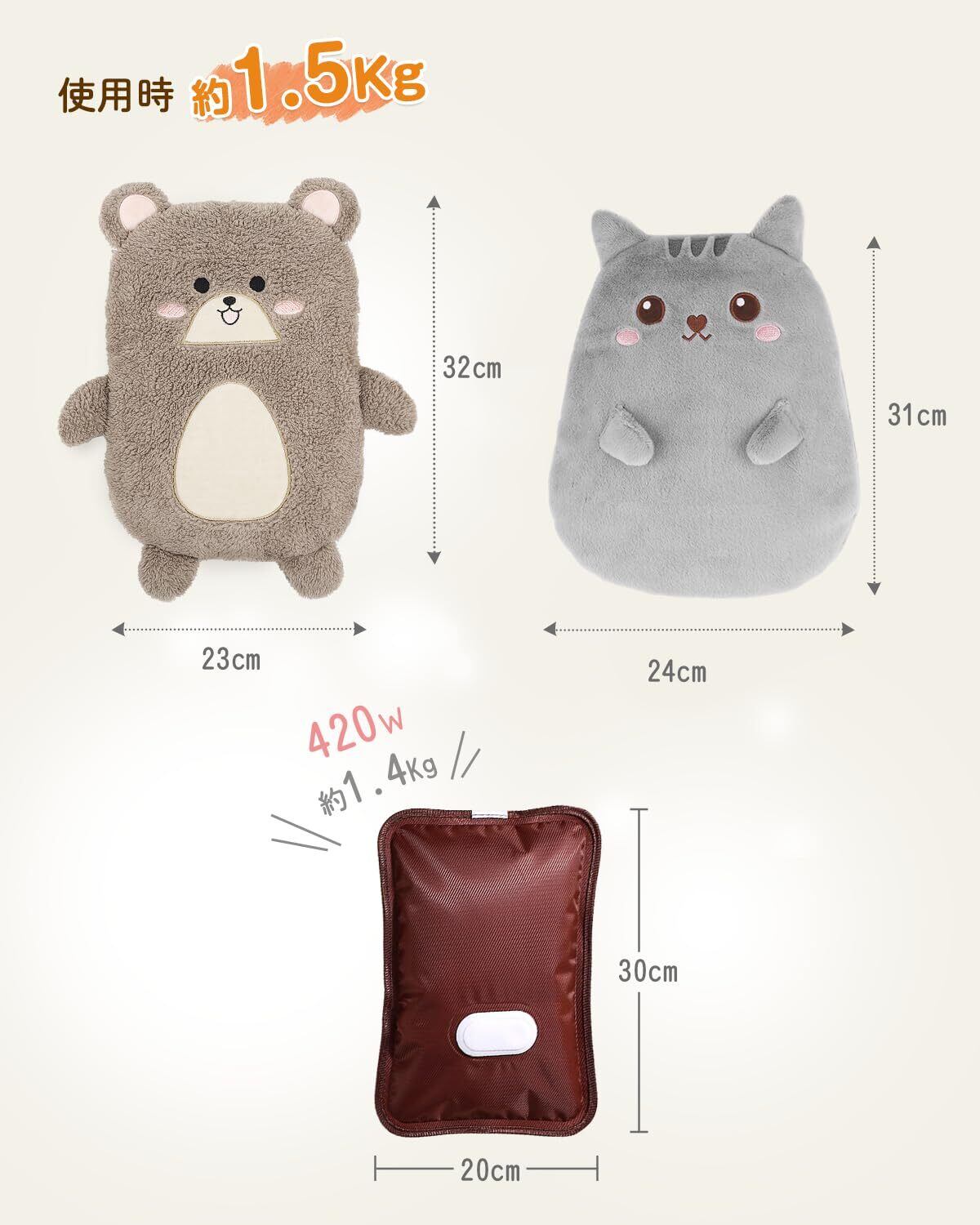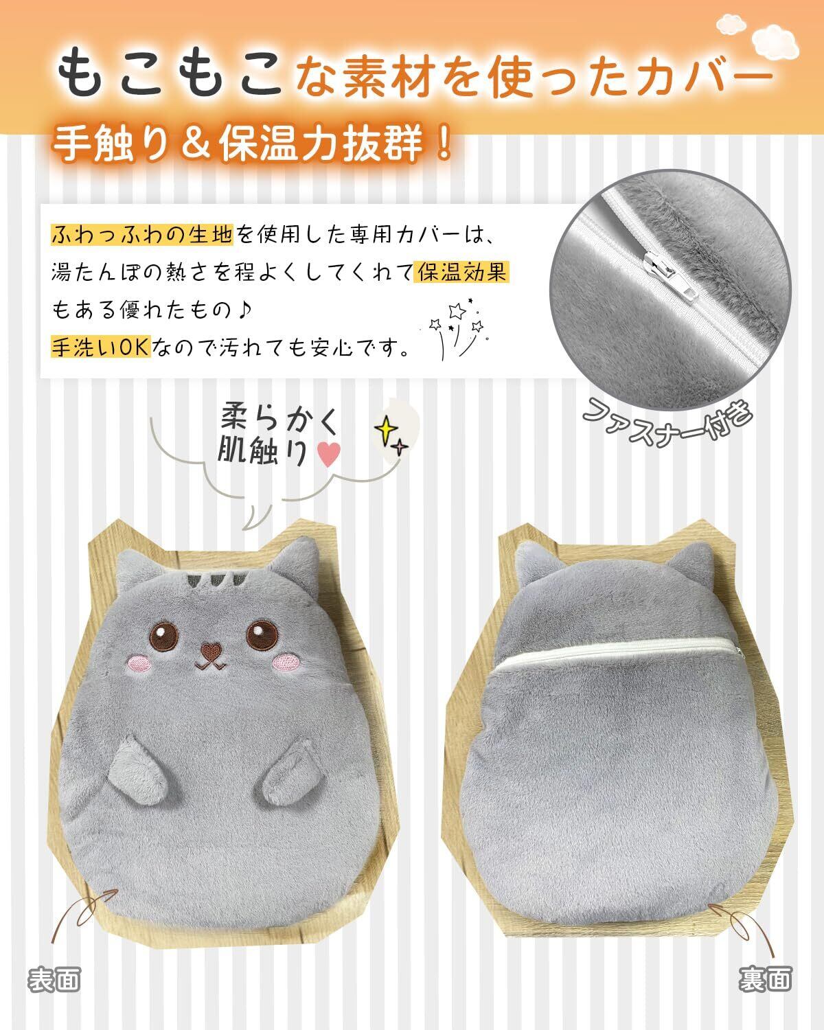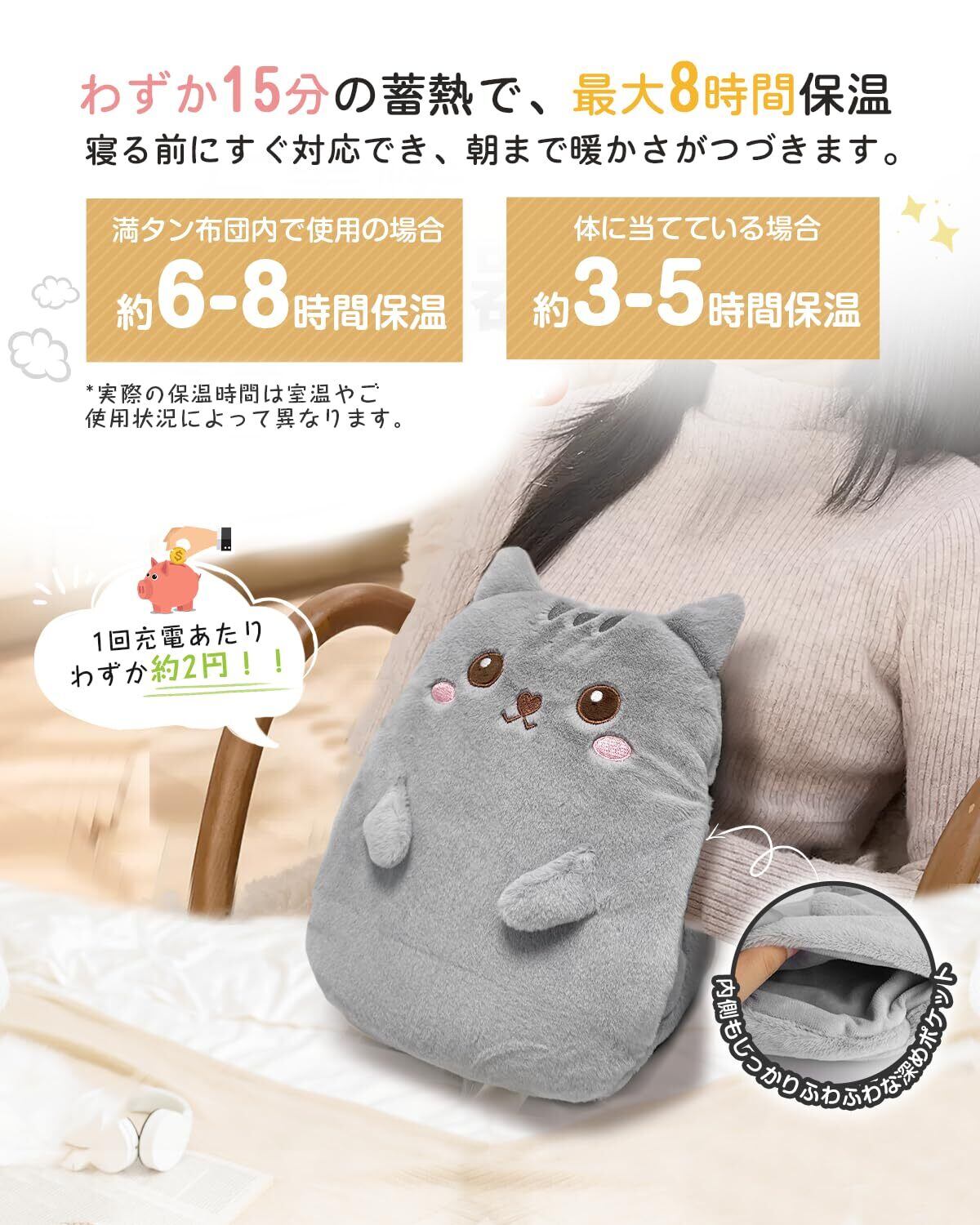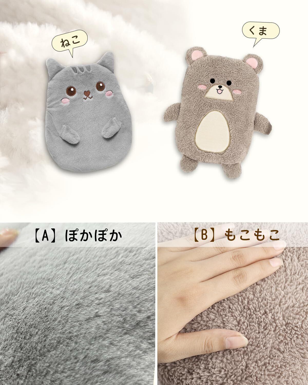 【両手入れタイプ&深めポケット】保温カバーの両側に深めポケット付き、手を入れることができる。ふわふわの生地を使用した専用カバーは、ゆたんぽの熱さを保持してくれて、そんなに早く冷められません。触り心地も良くて、ソフトな心地よい暖かさを体感できる。可愛いネコのカバーを着いて、低温やけども心配なし、お部屋にいるだけで癒される冬の可愛い相棒ですプレゼントにおすすめです!