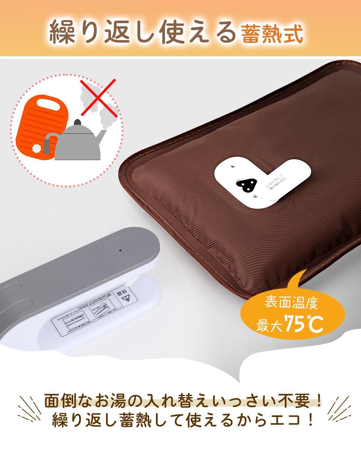 【15分急速充電&最大10時間保温】わずか15分の充電で湯たんぽが朝までばっちり温かい。布団の中で使う場合約6~10時間、お腹や腰にあてて使うなら約4~6時間。蓄熱温度は大体75~80℃(他社製品70℃)、保温効果も抜群。入浴中や寝る前に蓄熱しておけば、布団の中で使うと朝までしっかり体を温められます。ご注意:保温カバーをかけてしながら充電をしないでください。(※蓄熱時間、連続使用時間は周囲の環境温度により異なります。)