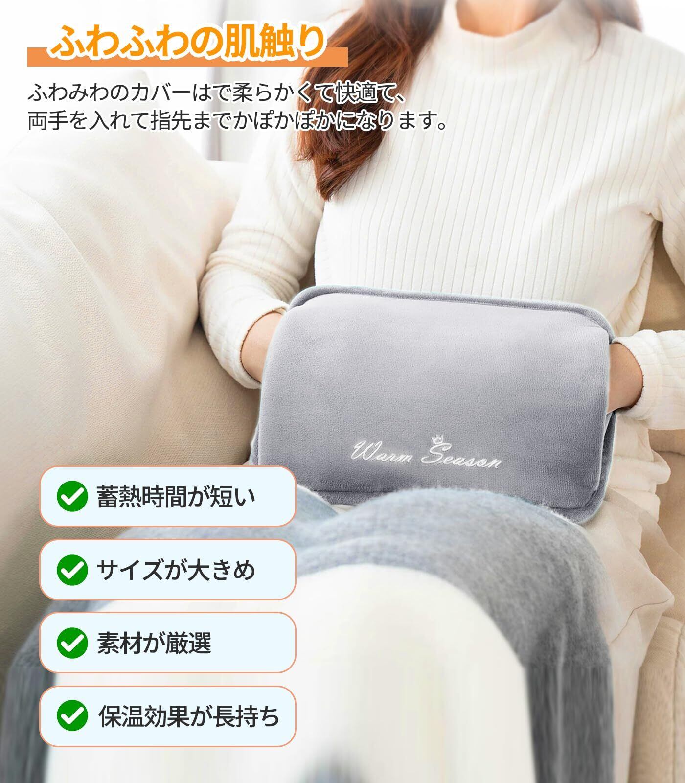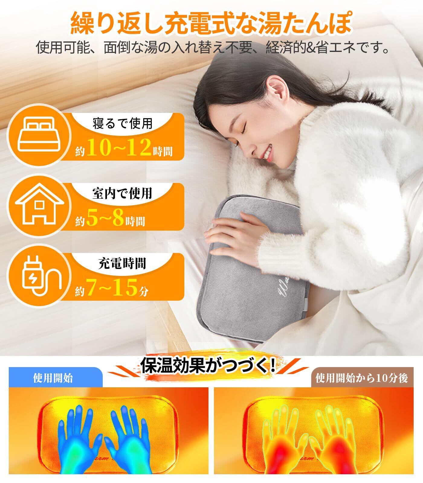 Wolfhowl 湯たんぽ 充電式 ゆたんぽ【特大サイズ・Max12H長時間保温】15分急速充電 防爆&過熱防止機能 電気湯たんぽ 暖房器具 省エネ エコ湯たんぽ ソフト カバー洗濯可能 お腹周り/足元/背中/指先あったかグッズ 防寒グッズ 柔らかいカバー付き 湯たんぽ PSE安全認証済 日本語説明書(ライトグレー)