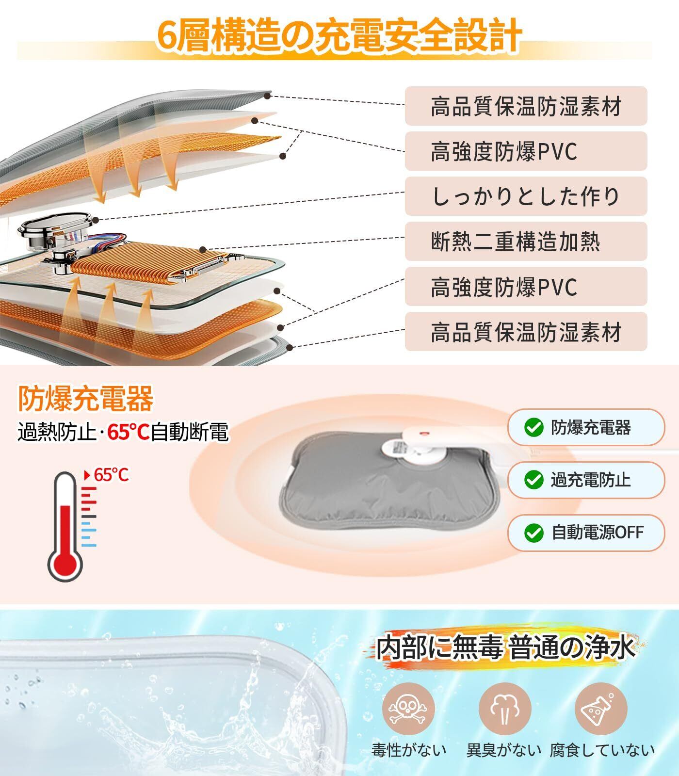【水の入替不要·経済的省エネ】実は想像以上にエコ湯タンポです。 お湯の入れ替えが一切不要な点です。充電式 ゆたんぽは暖房器具のような室内空気の乾燥がないから、空気も乾燥しない、喉の不具合やお肌の乾燥させない、身体にも自然にもやさしい!冬に気になる電気代は1回の充電でわずか2円!お財布に優しい!湯たんぽ本体はABS防火材を使用しており、異臭がなく、難燃性、耐熱性のため、心配しないでご使用いただけます。とくに秋〜冬にかけて寒くなる時期には手放せなくなる防寒対策用アイテムで重宝して活用する事が出来ます。