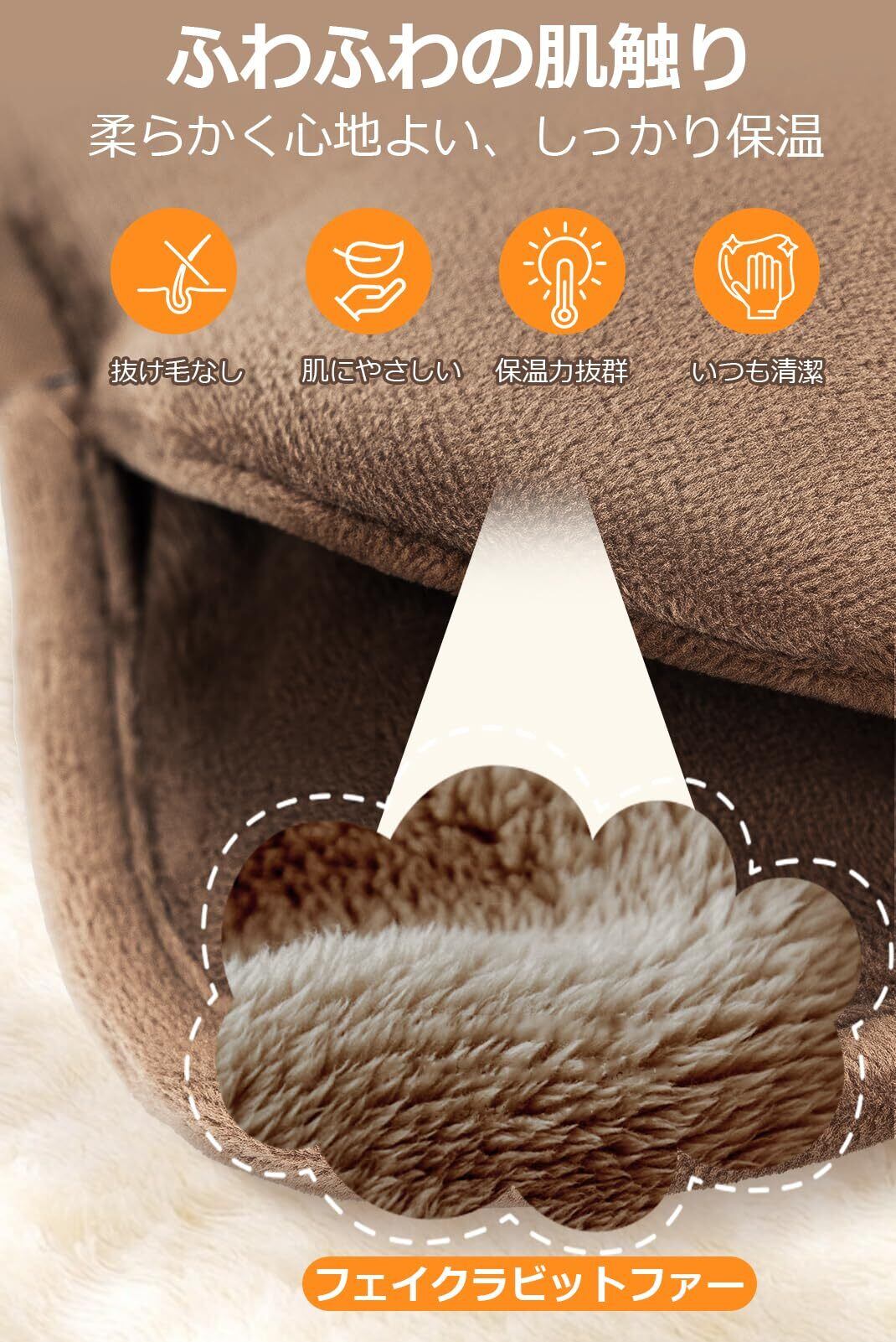 【優しい肌触りのカバー】充電式湯たんぽは、保温ポケット構造により暖かさを逃しにくく、手のひら全体をしっかり包み込む人間工学デザインを採用しています。ふんわりとした高級人造ウサギ毛を使用した保温カバーは、肌触りがなめらかで心地よく、インテリアにも自然に馴染みます。さらに、毛玉ができにくく、カバーは取り外して洗えるため、いつでも清潔にお使いいただけます。