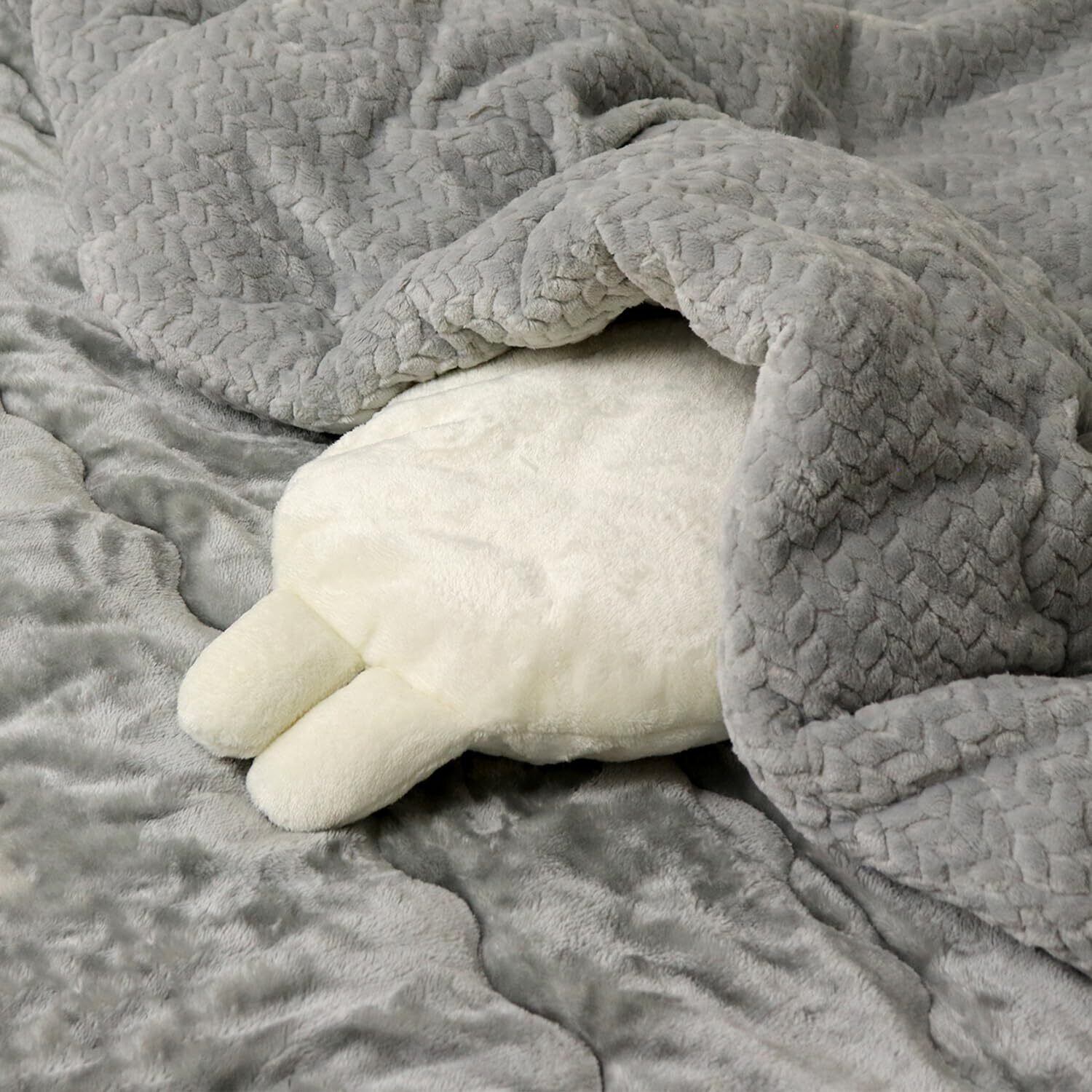 【Point2】 カバーにはそれぞれ、かわいいしっぽと耳がついています。 ふわふわで柔らかい、なでごこち。 手洗いOK!