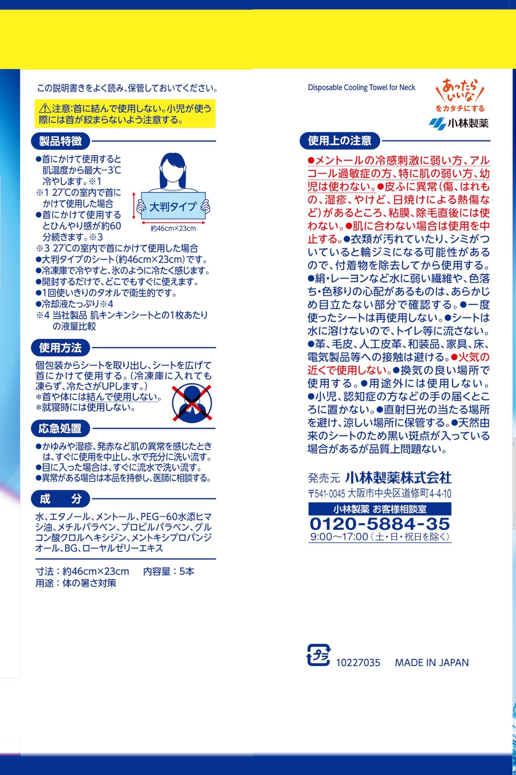 熱中対策 冷やしタオル 5本入 大判シートで首ひんやり 小林製薬