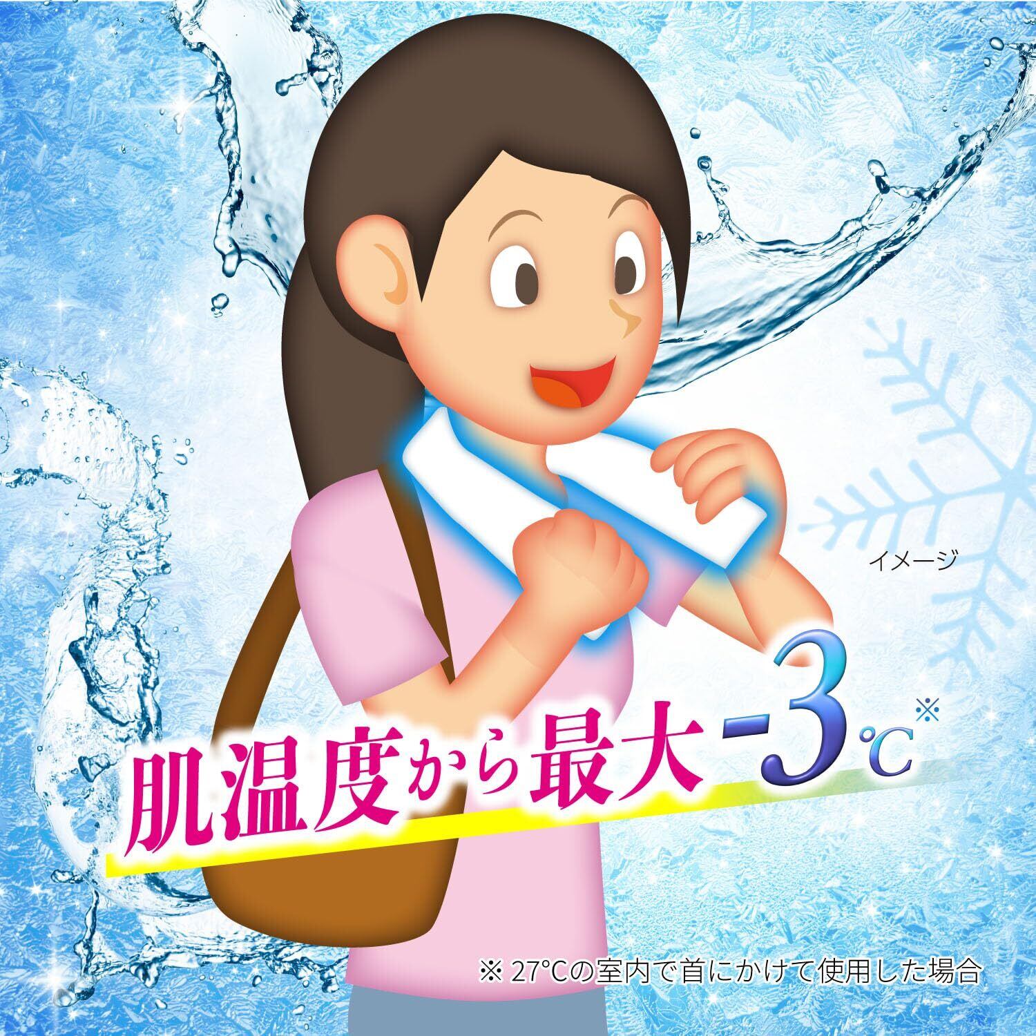 首にかけて使用すると肌温度から最大-3℃冷やします ※27℃の室内で首にかけて使用した場合