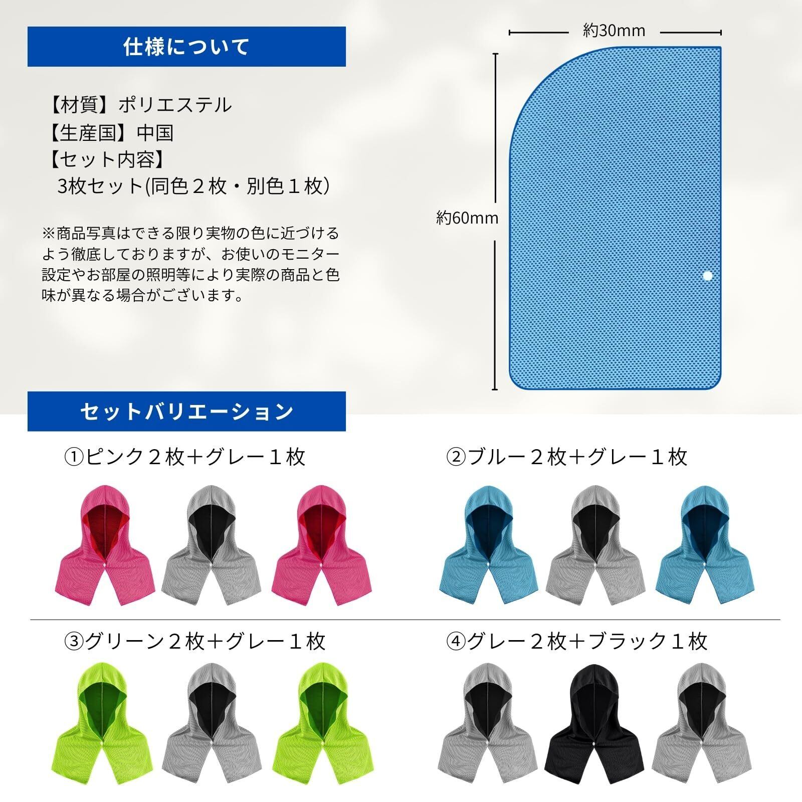 [GJTr] 冷感 フード タオル 3枚組 冷却 クールタオル ひんやり 涼しい 熱中症対策 (グレー2・ブラック1)