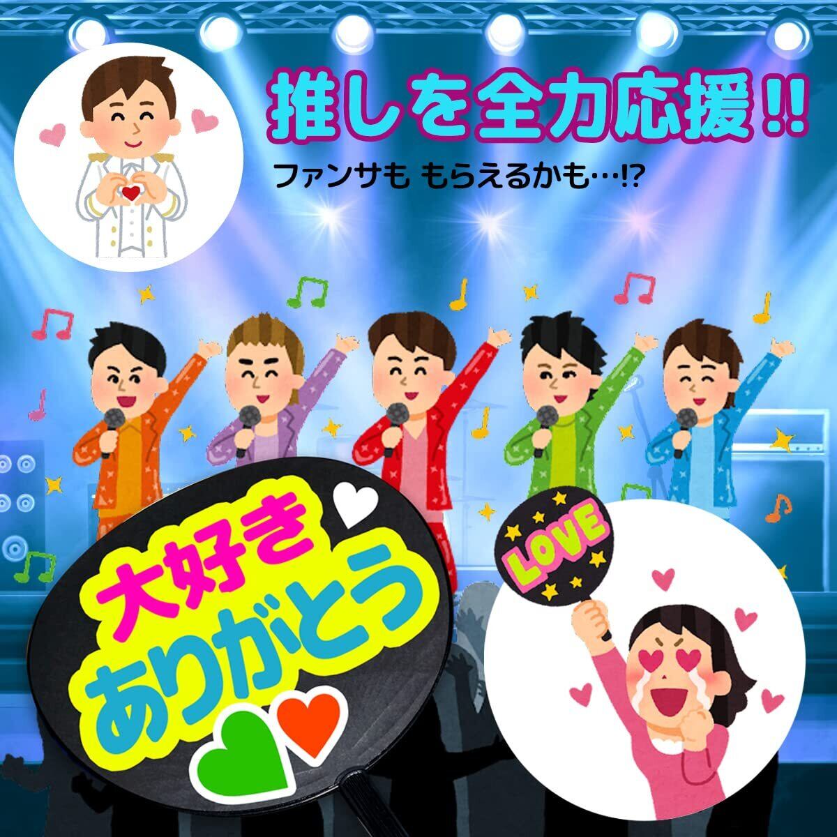 【サイズ】 ファンサうちわ: 285mm×295mm ファンサうちわの持ち手 135mm(ジャニーズ公式うちわと同サイズ)