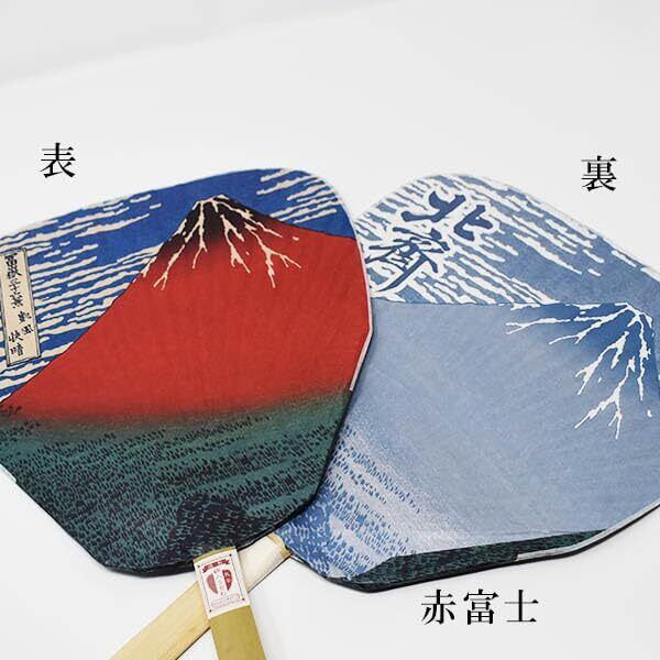 民芸竹うちわ 網入渋うちわ 網入り 団扇 (赤富士)